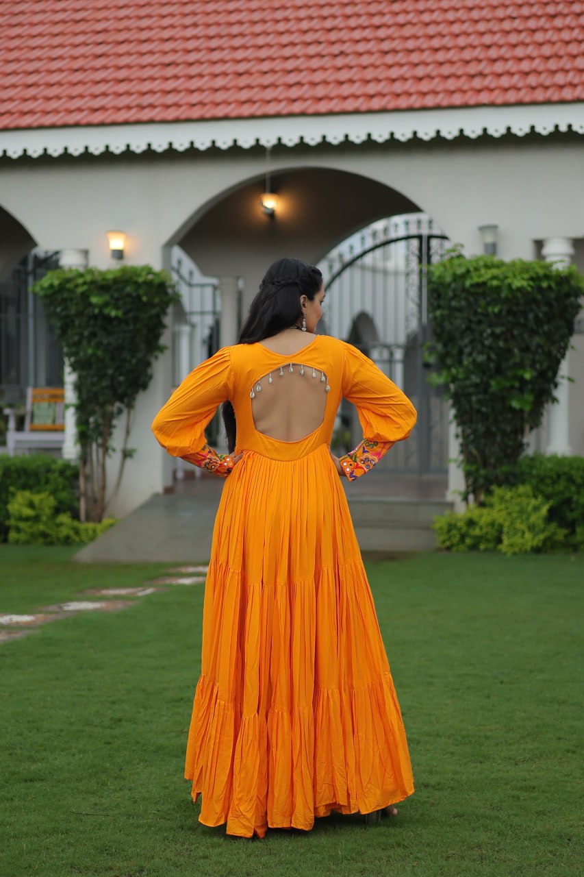 2025 NAVARATRI GOWN KUTCHI GAMTHI WORK WITH 12 METER FLAIR GOWN