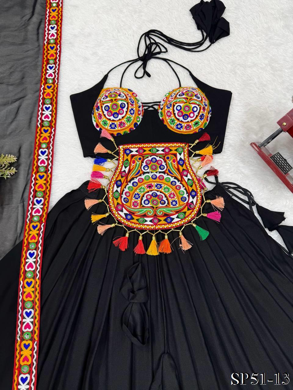Black Color Heavy Reyon Fabric With Gamthi Work Lehenga Choli