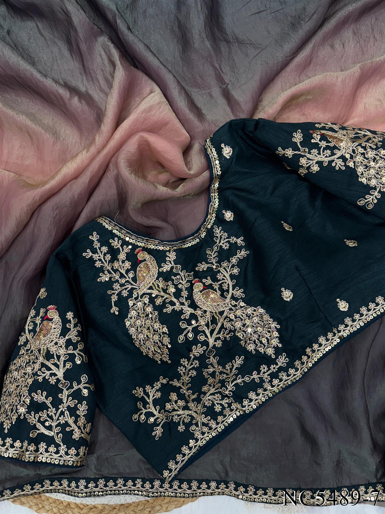 Black Color Soft Space Silk Sequience Coding Work Saree