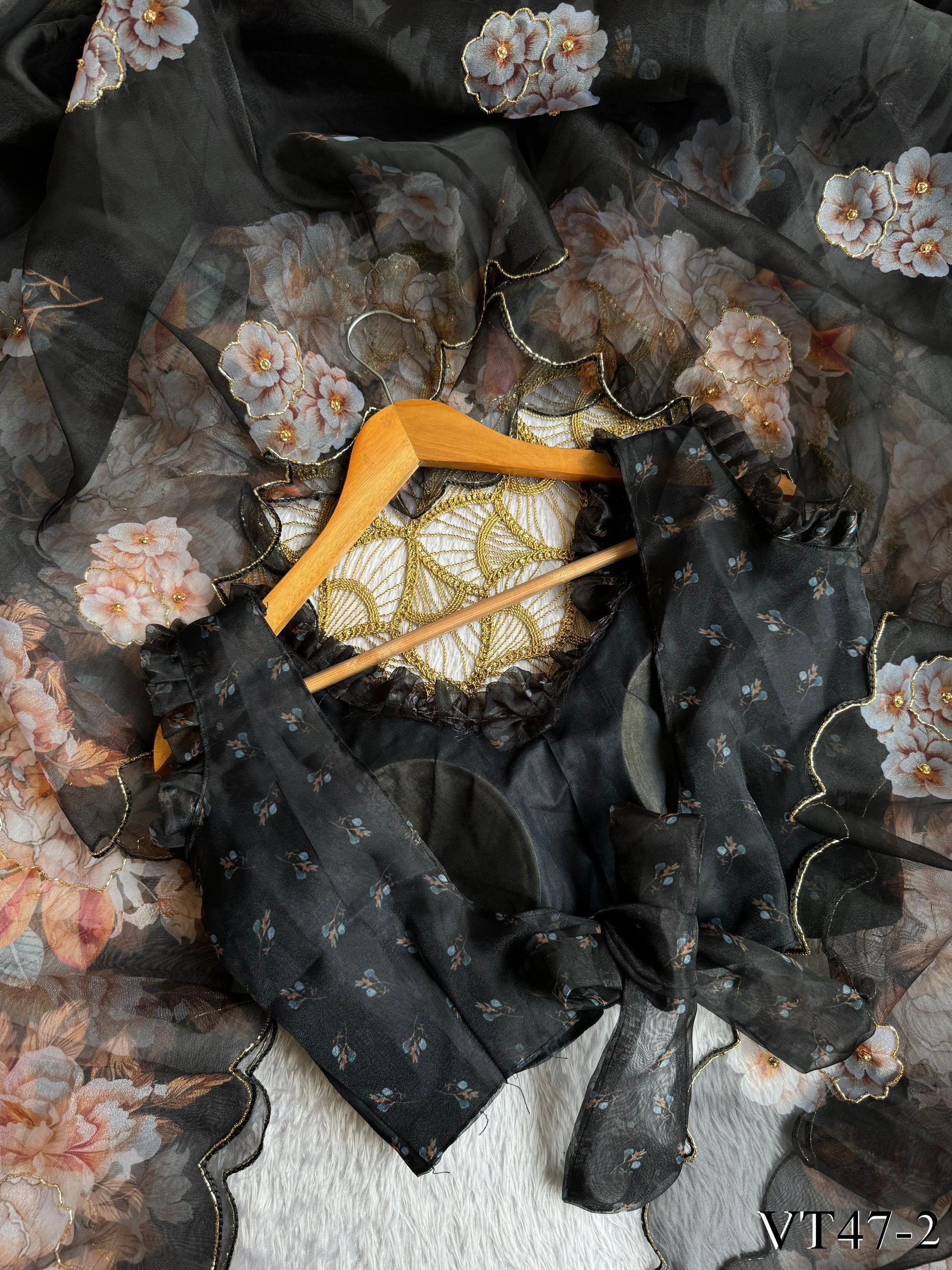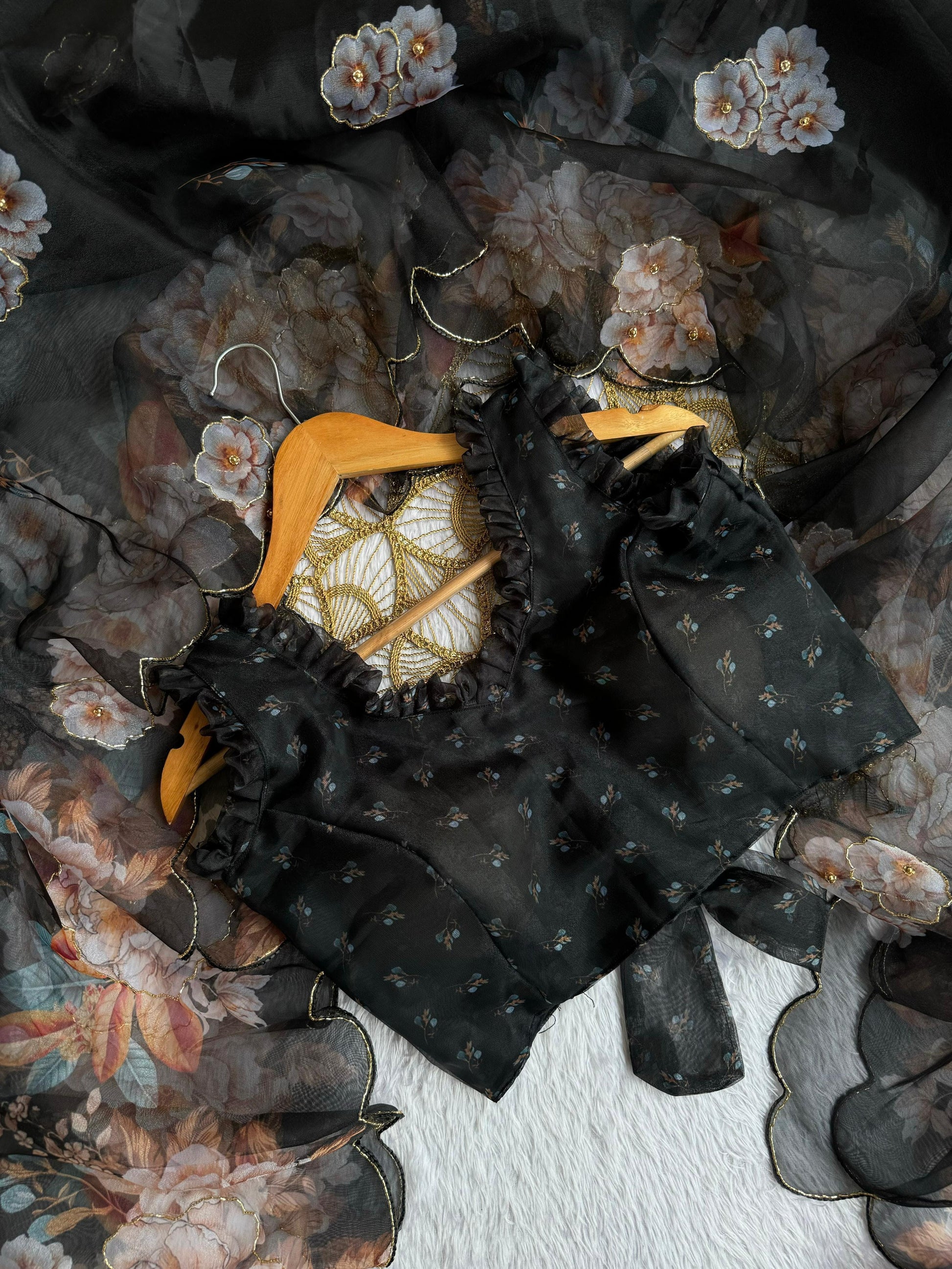 Black Color With Soft Organza With Digital Print Work Saree