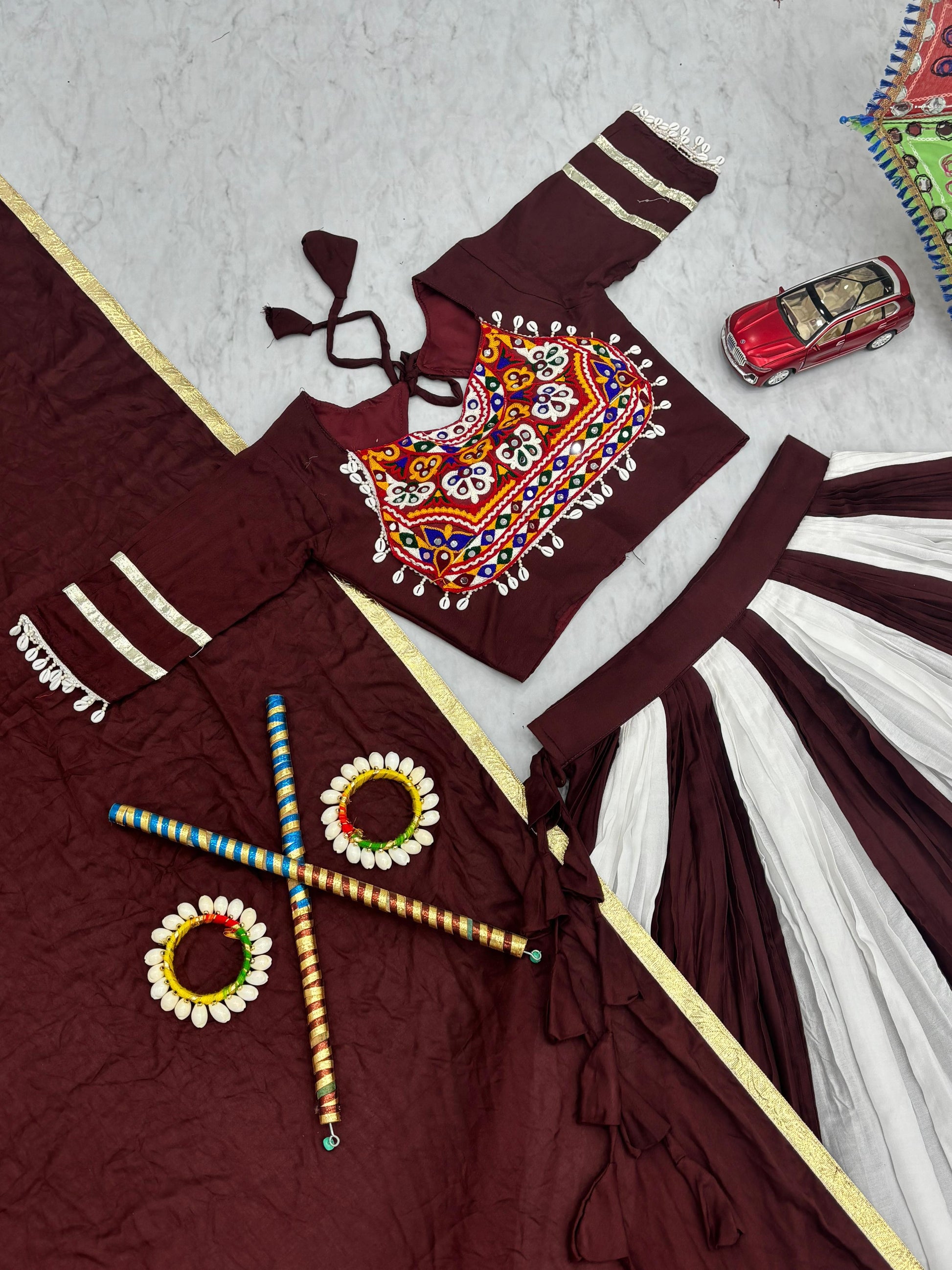 Brown Color Pure Cotton Lumpi Lace Border Lehenga Choli