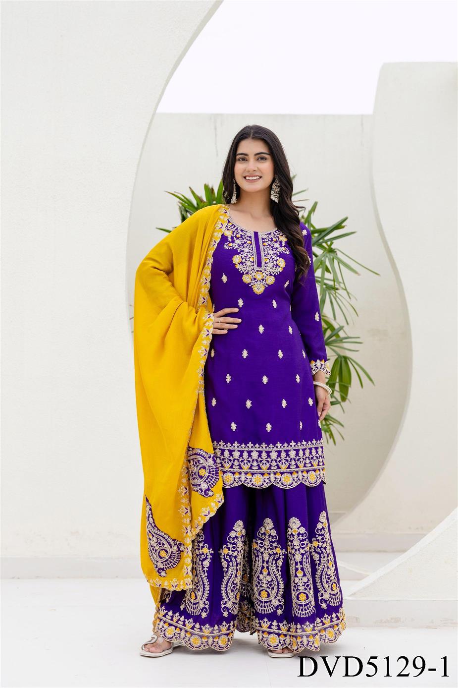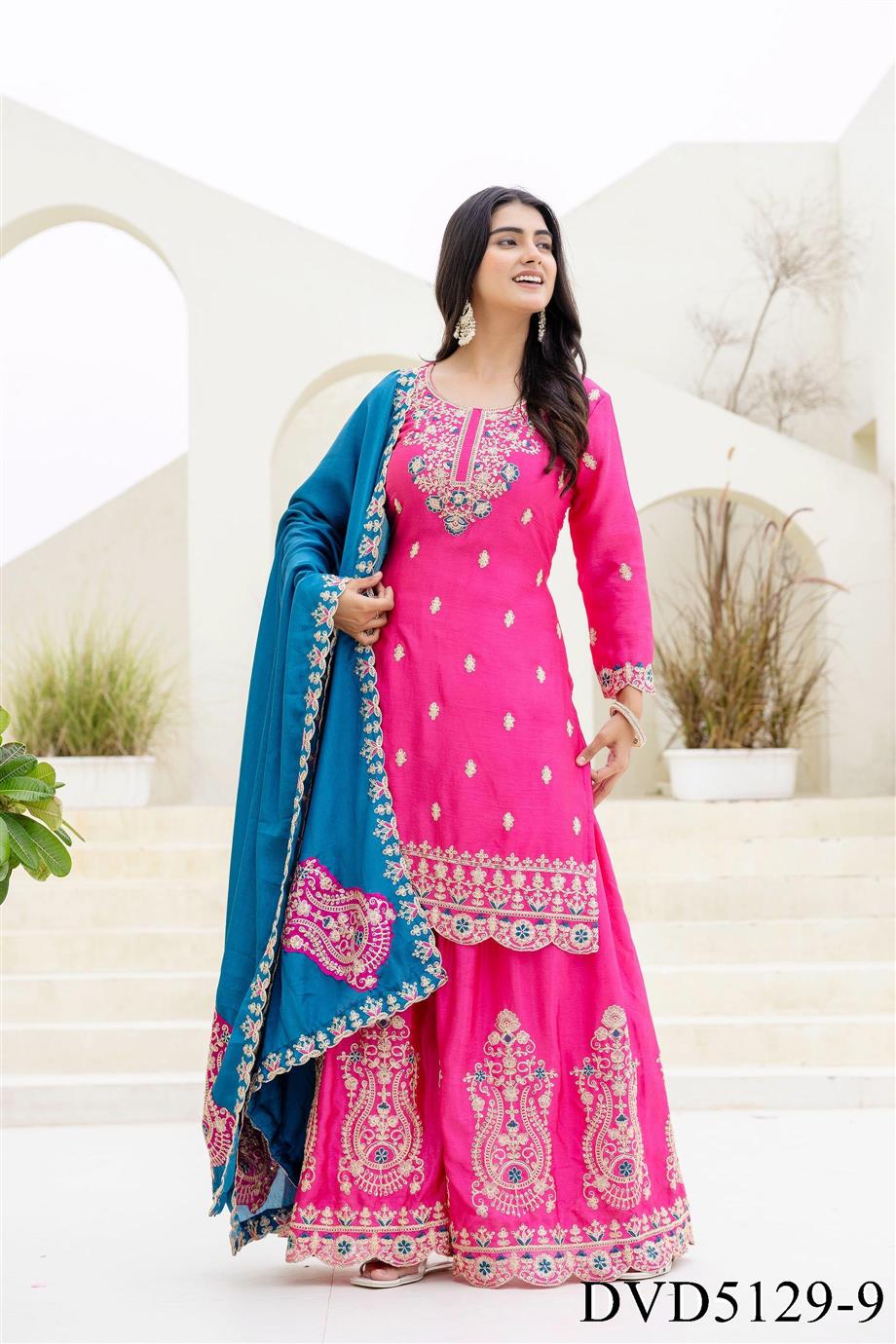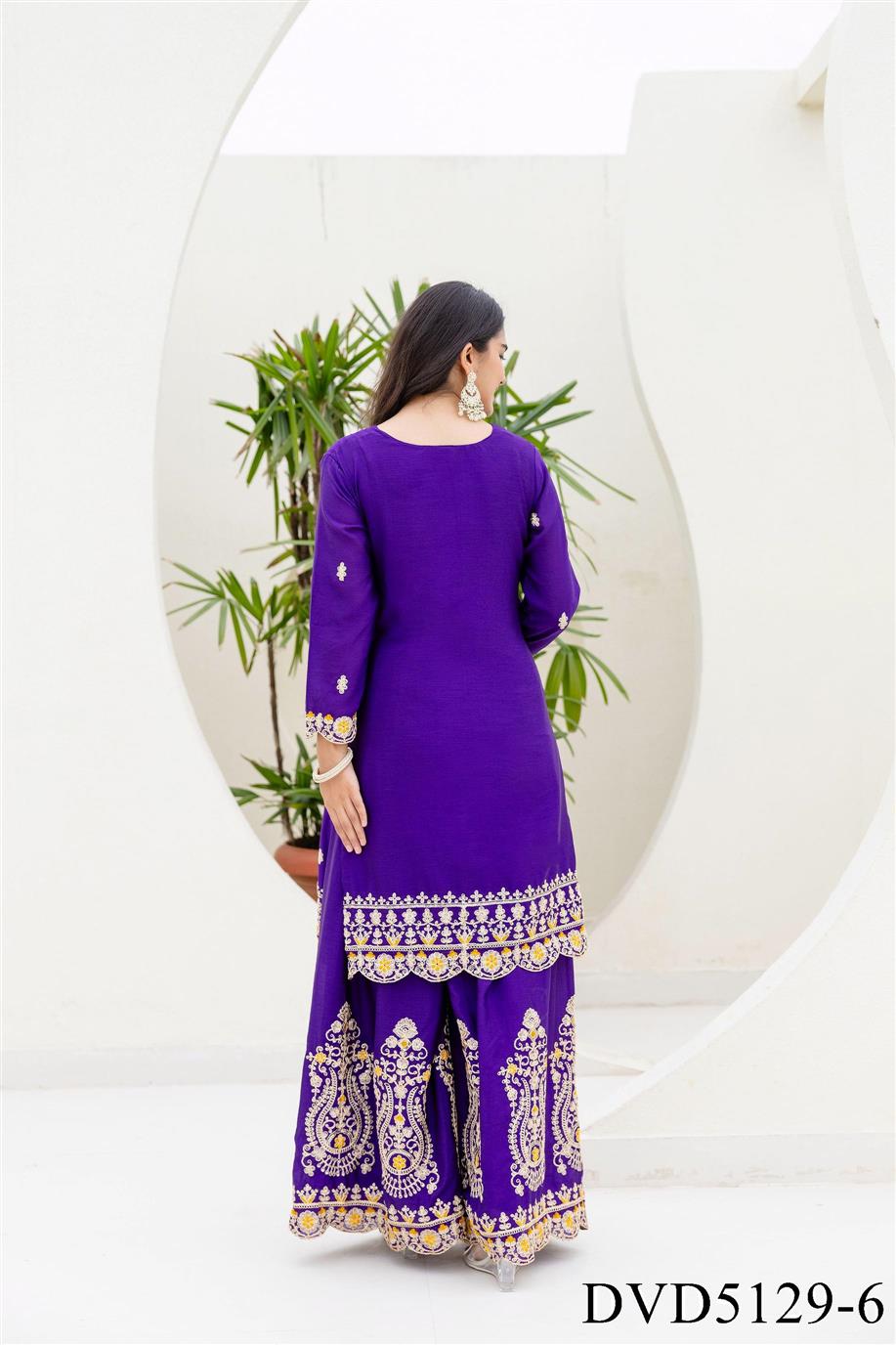 Chinon Fabric with Embroidery Sequience Coding Work Top Sharara