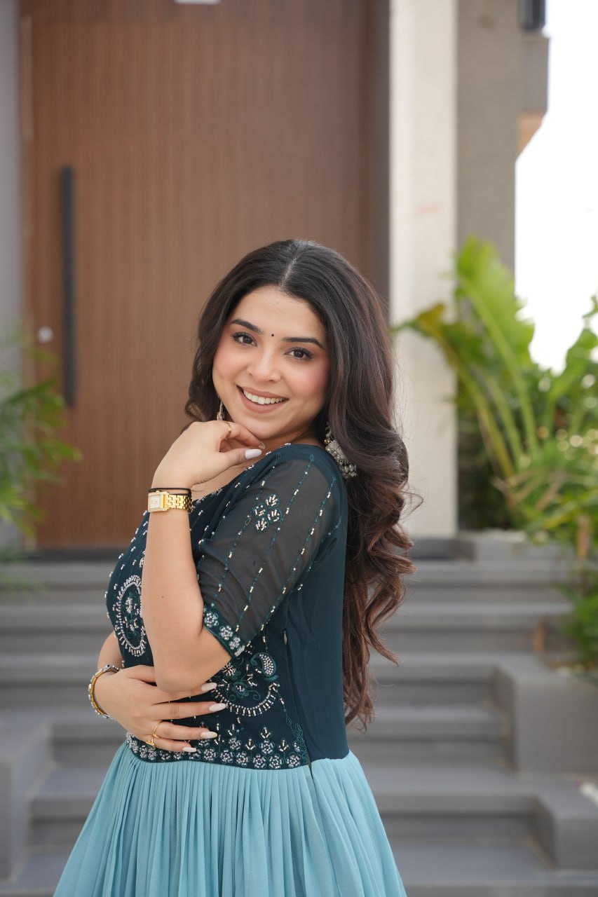 DRESS BAZZAR FAUX BLOOMING BEADS EMBROIDERED GOWN