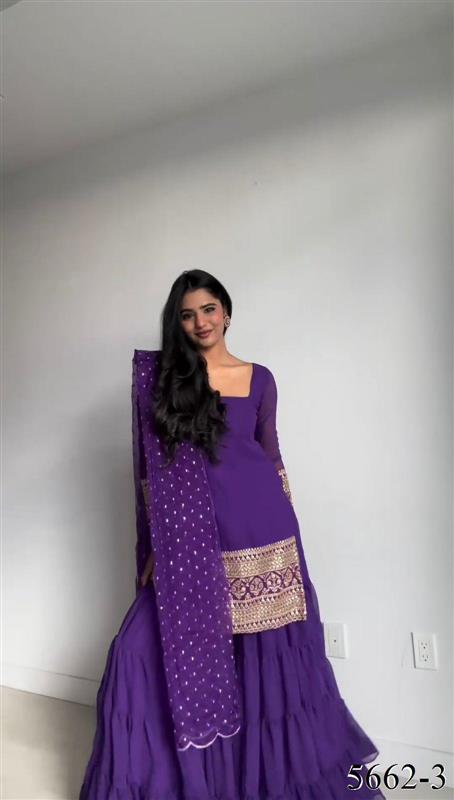 Faux Georgette Thread With Sequience Work Top Sharara