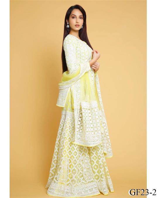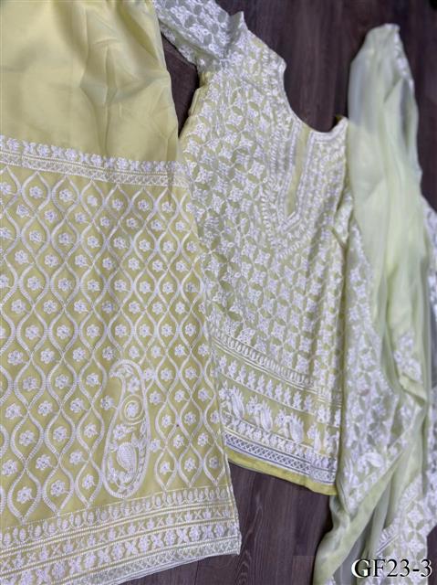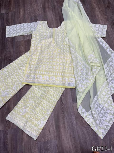 Georgette Embroidery Chine Satin Work Top Plazzo