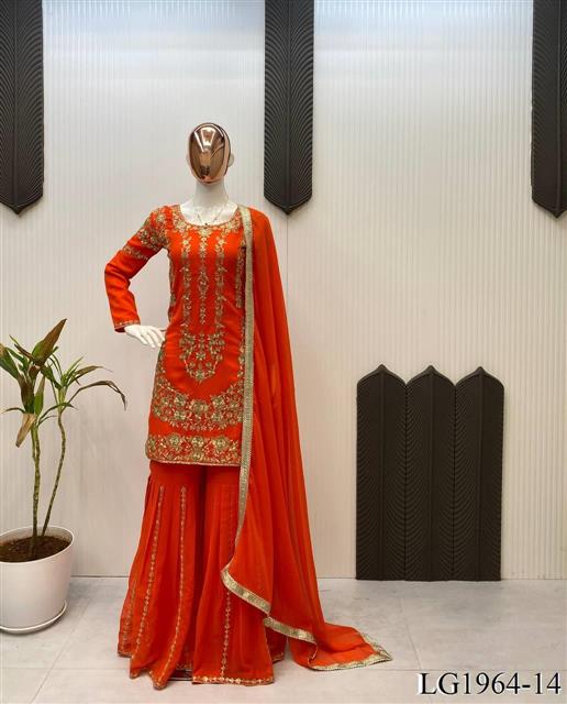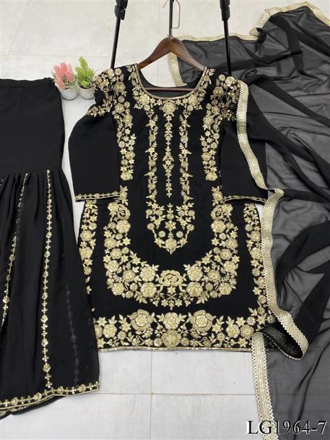Georgette Fabric With Sequience Embroidery Work Top Sharara
