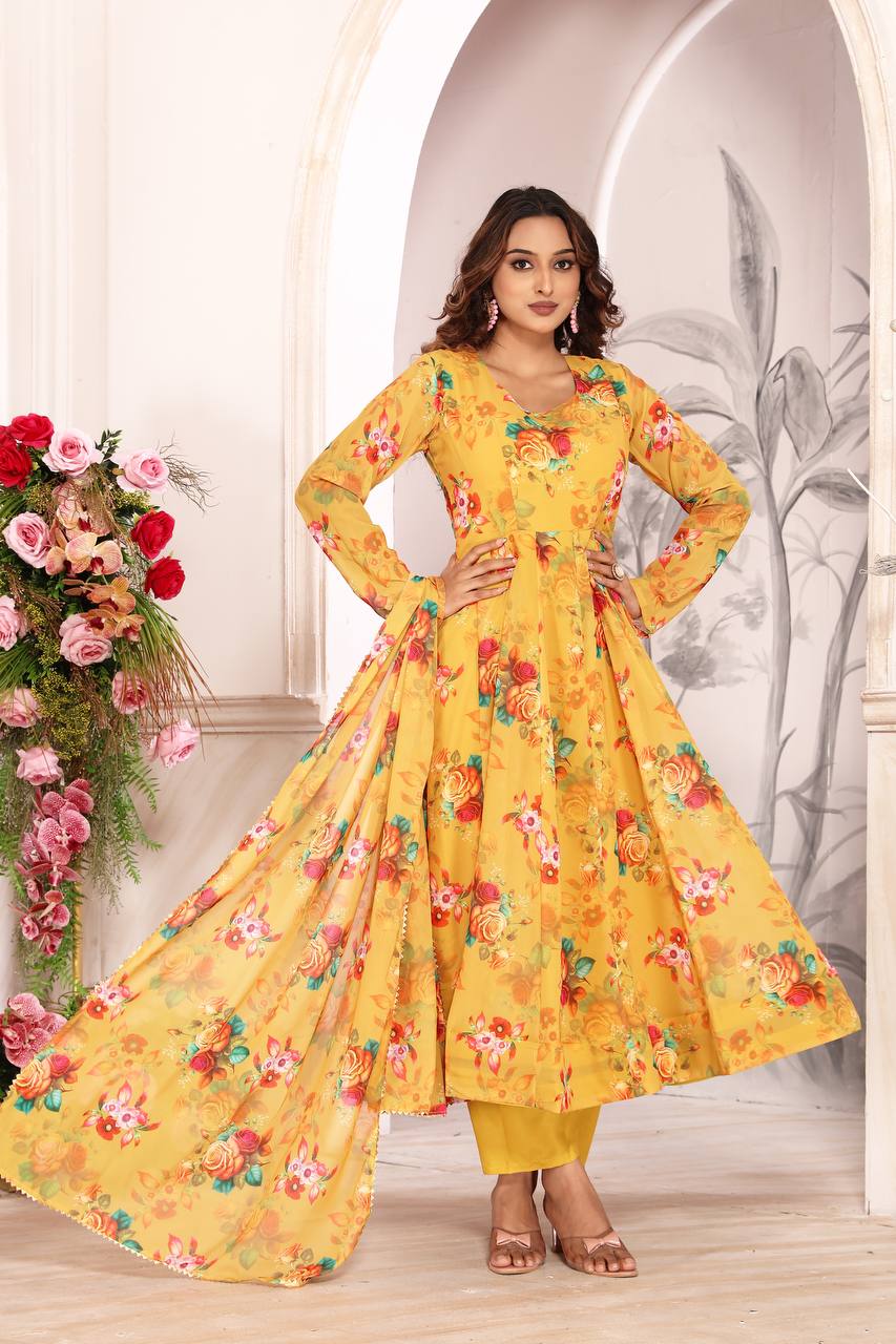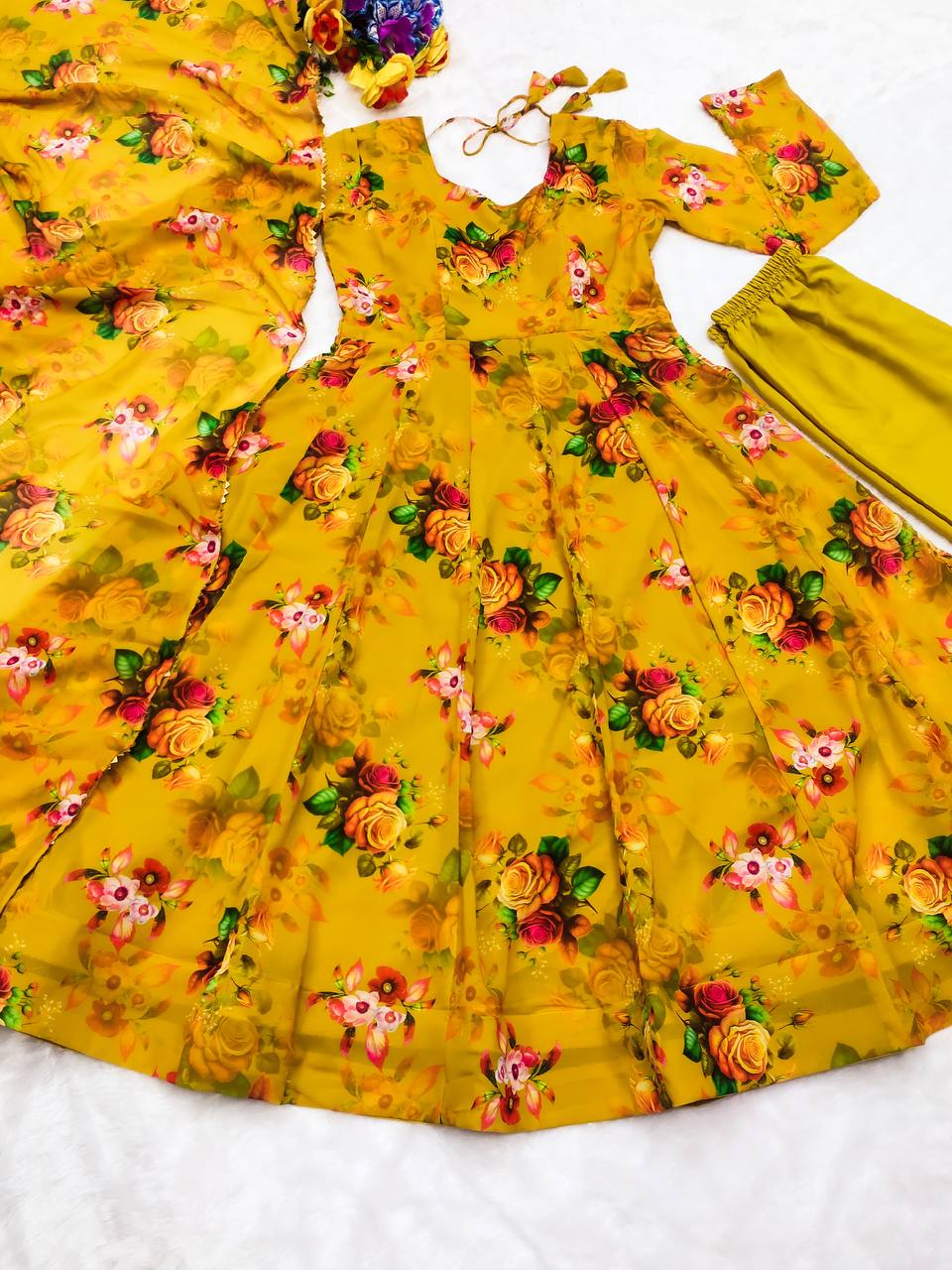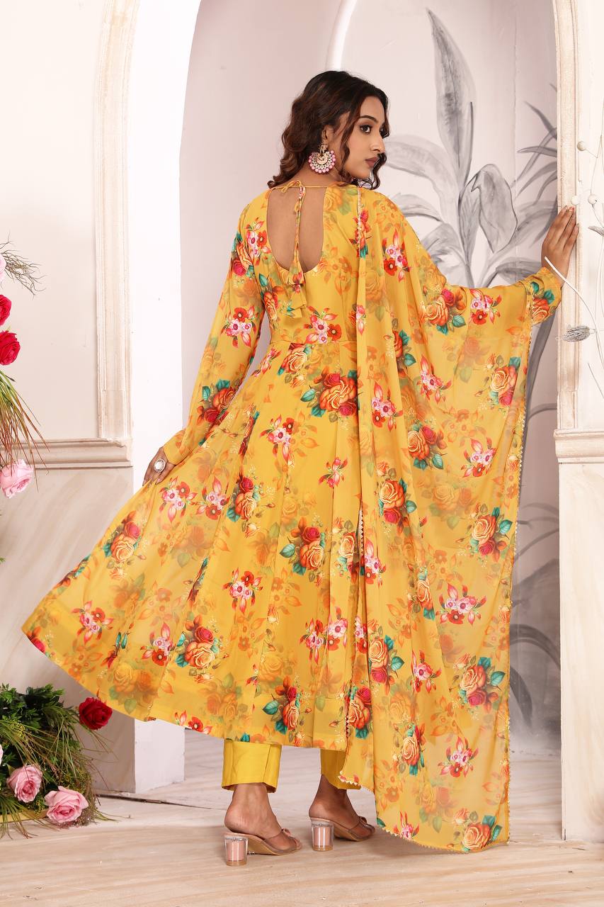 Heavy Faux Georgette Froral Printed Work Anarkali