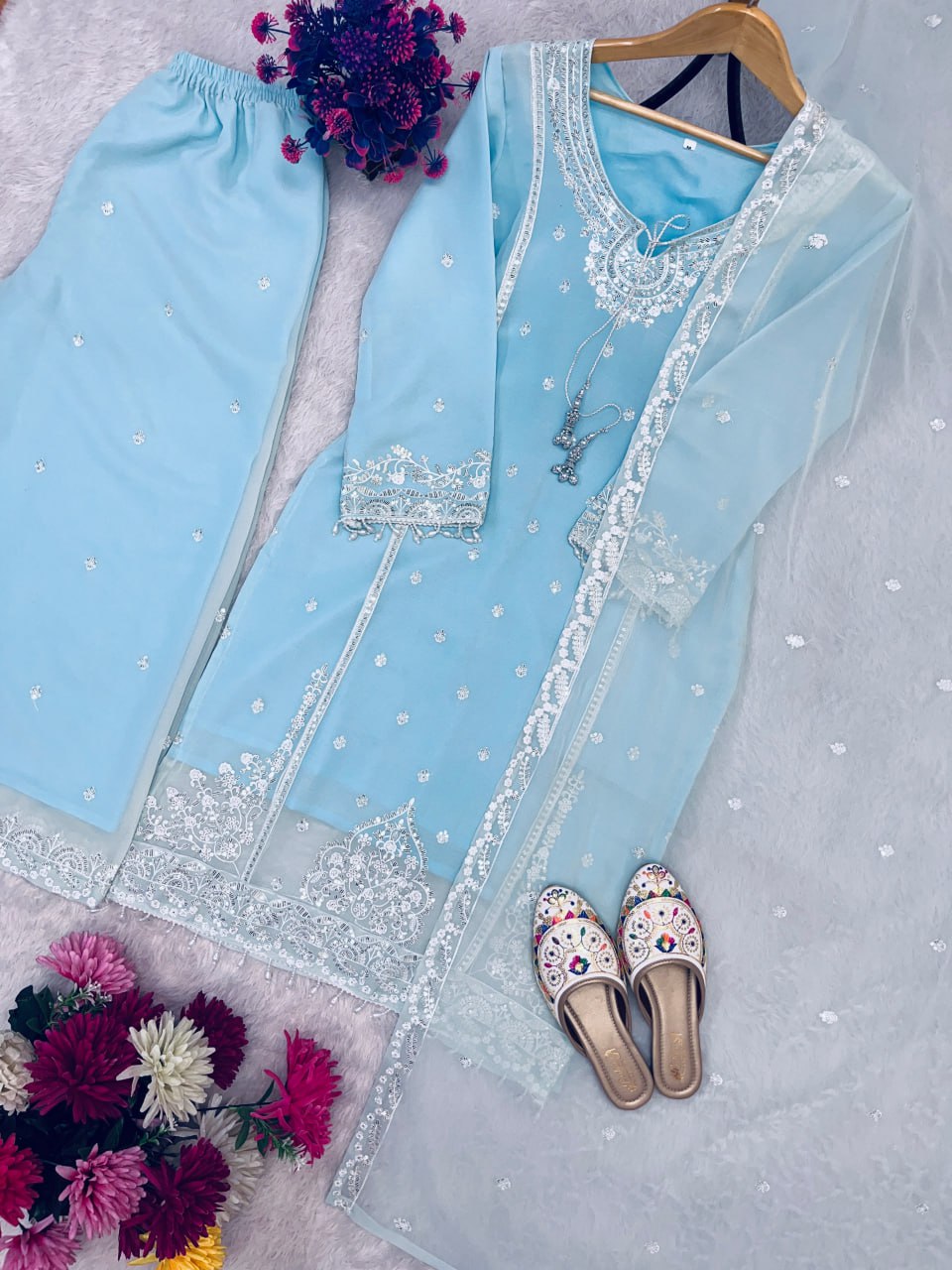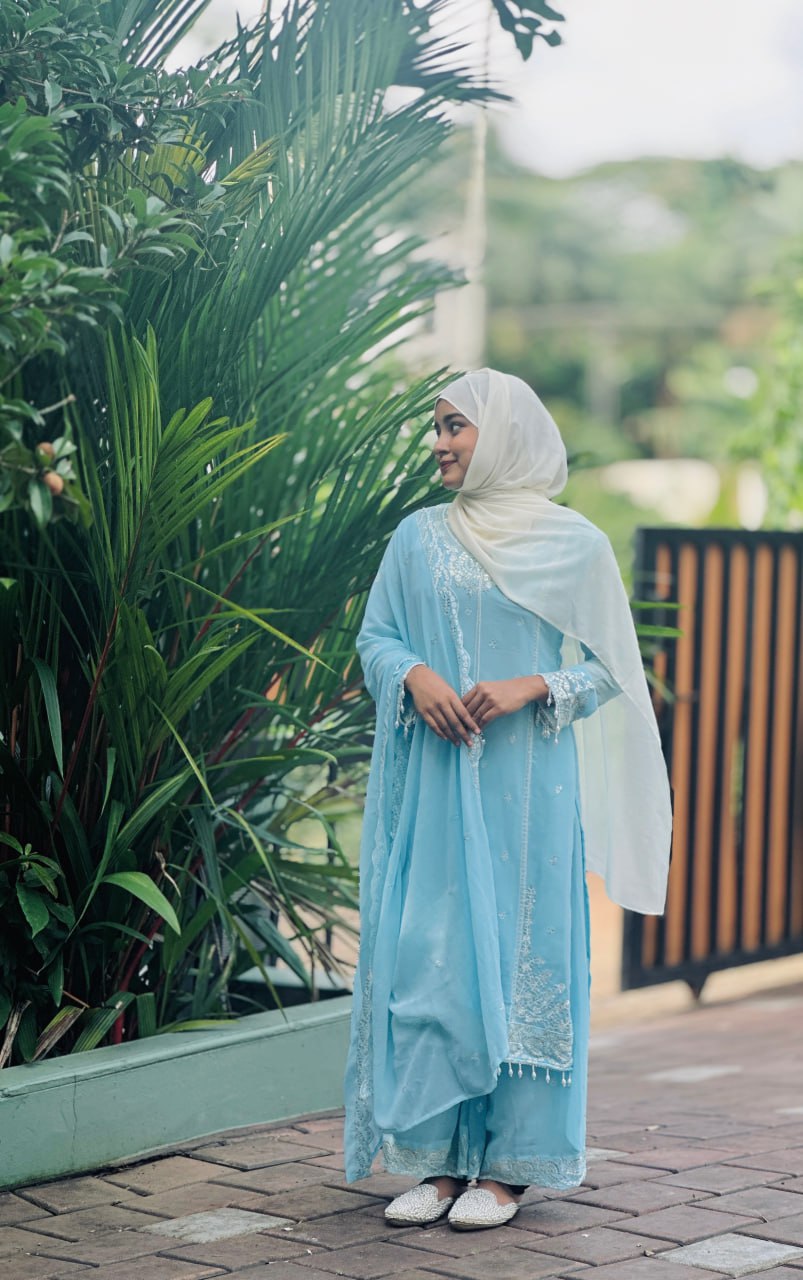 HEavy Fox Geprgette Embroidery Work Top Plazzo