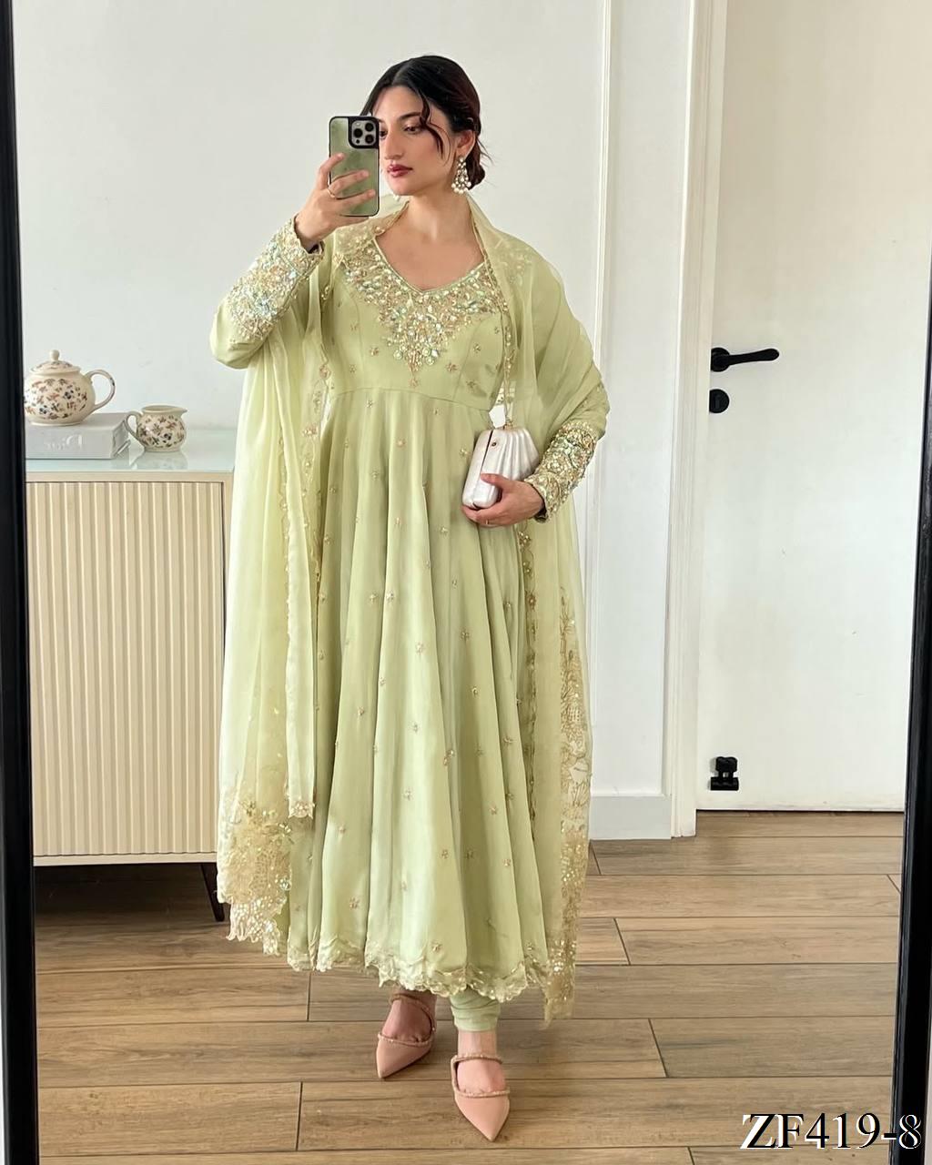 Heavy Geogette Embroidery Rembo Sequence Work Top Bottom