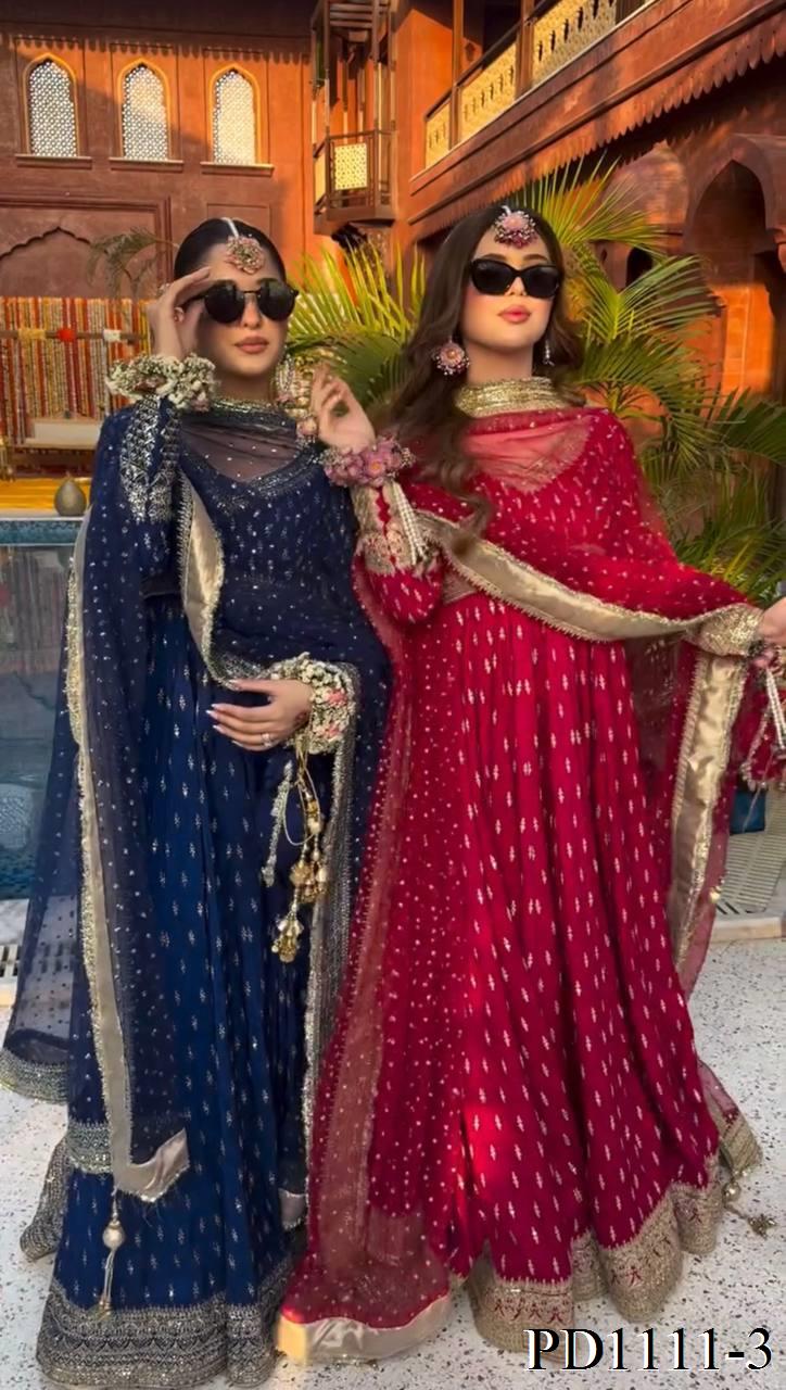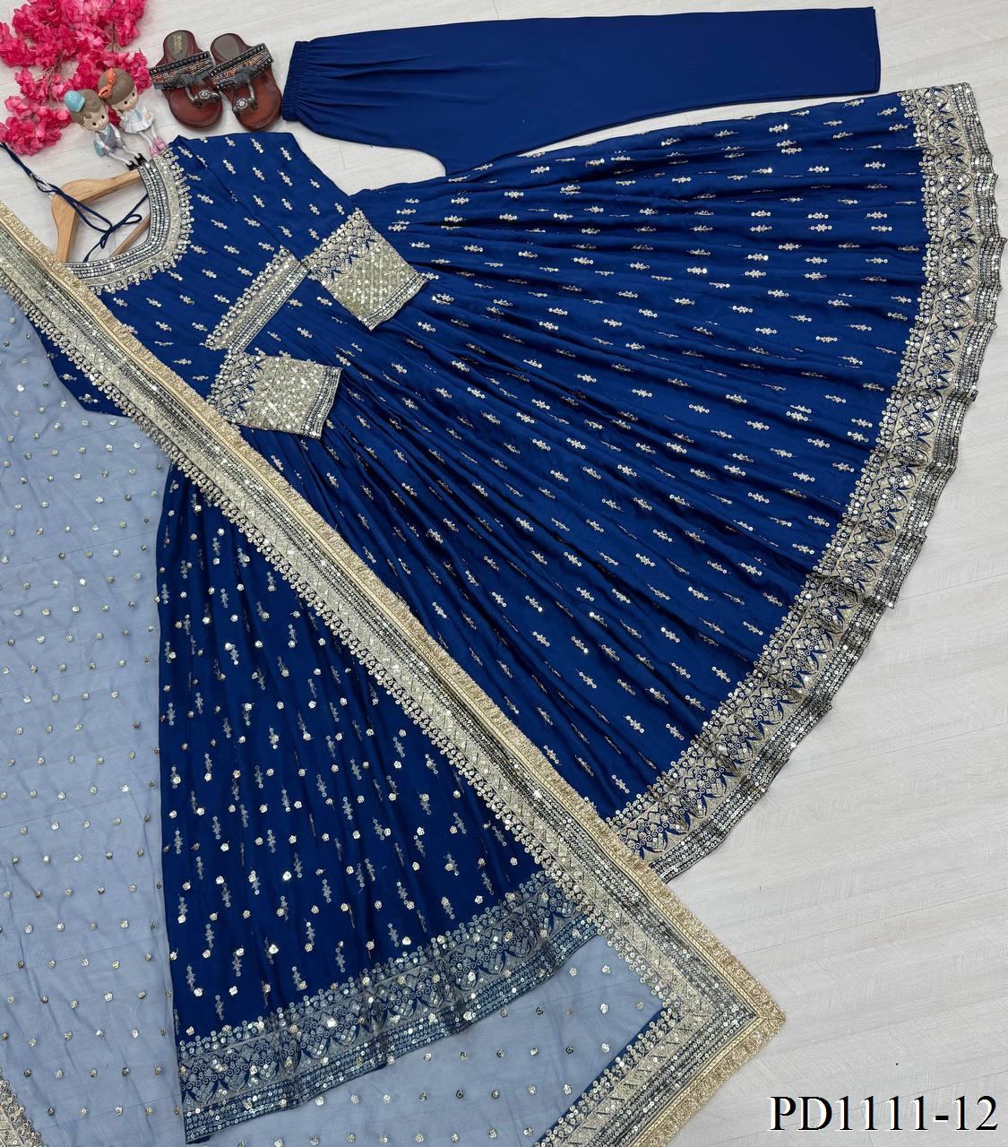 Heavy Pure Chinon Silk Embroidery Sequence Work Gown
