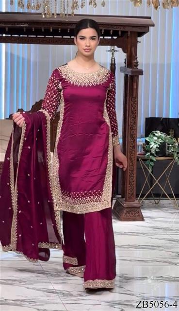 Natural Crepe Fabric With Embroidery Sequins Work Top Sharara