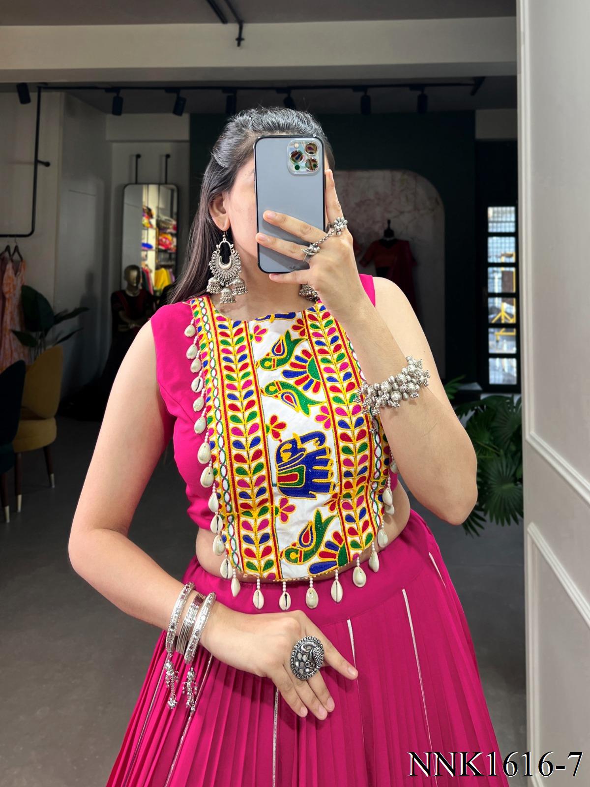 Navratri Special Reyon Fabric Plain Work With Lace Border Lehenga