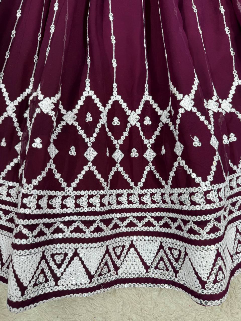 Orange Color Faux Georgette With Sequence Work Top Lehenga