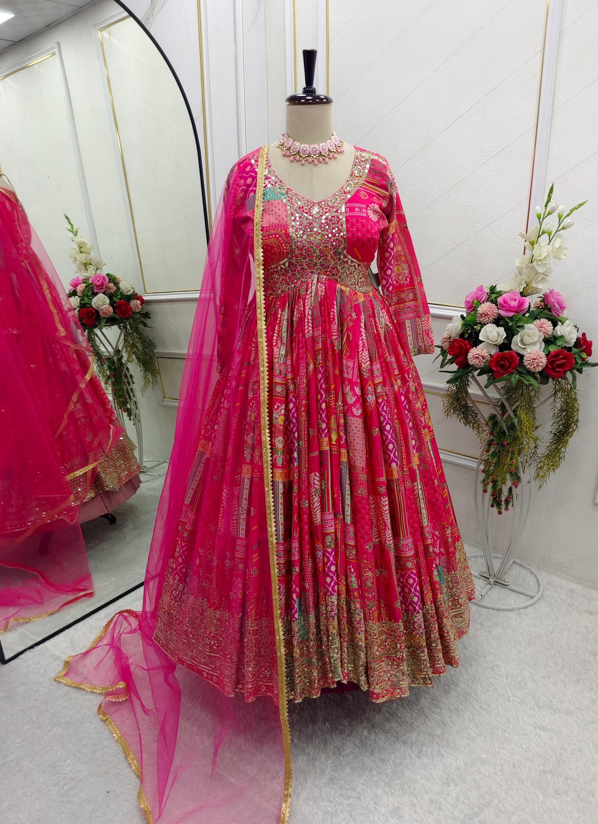Pink Color Chinon Silk With Digital Print Work Gown