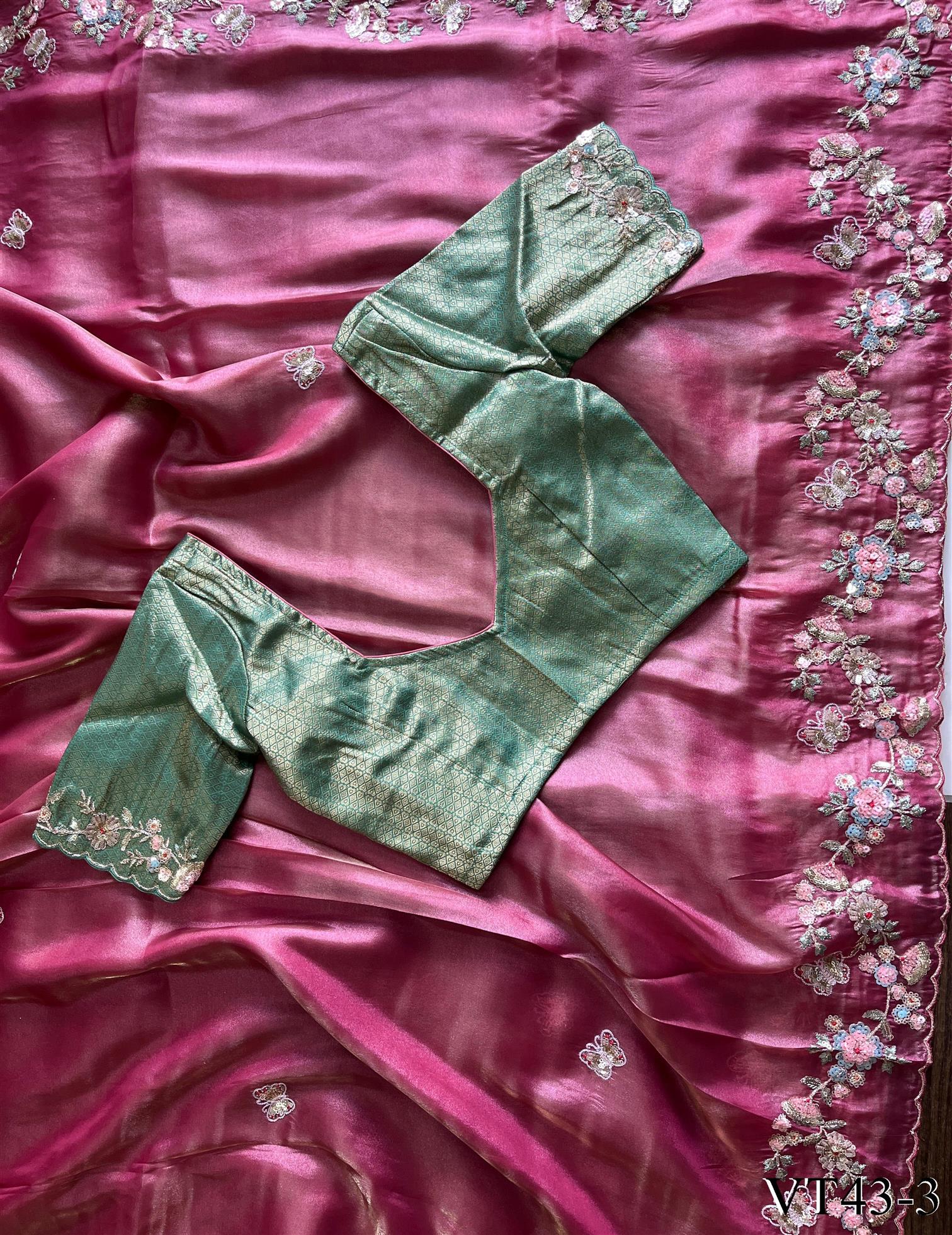 Pink Color Premium Tissue Silk With Butterfly Work Saree
