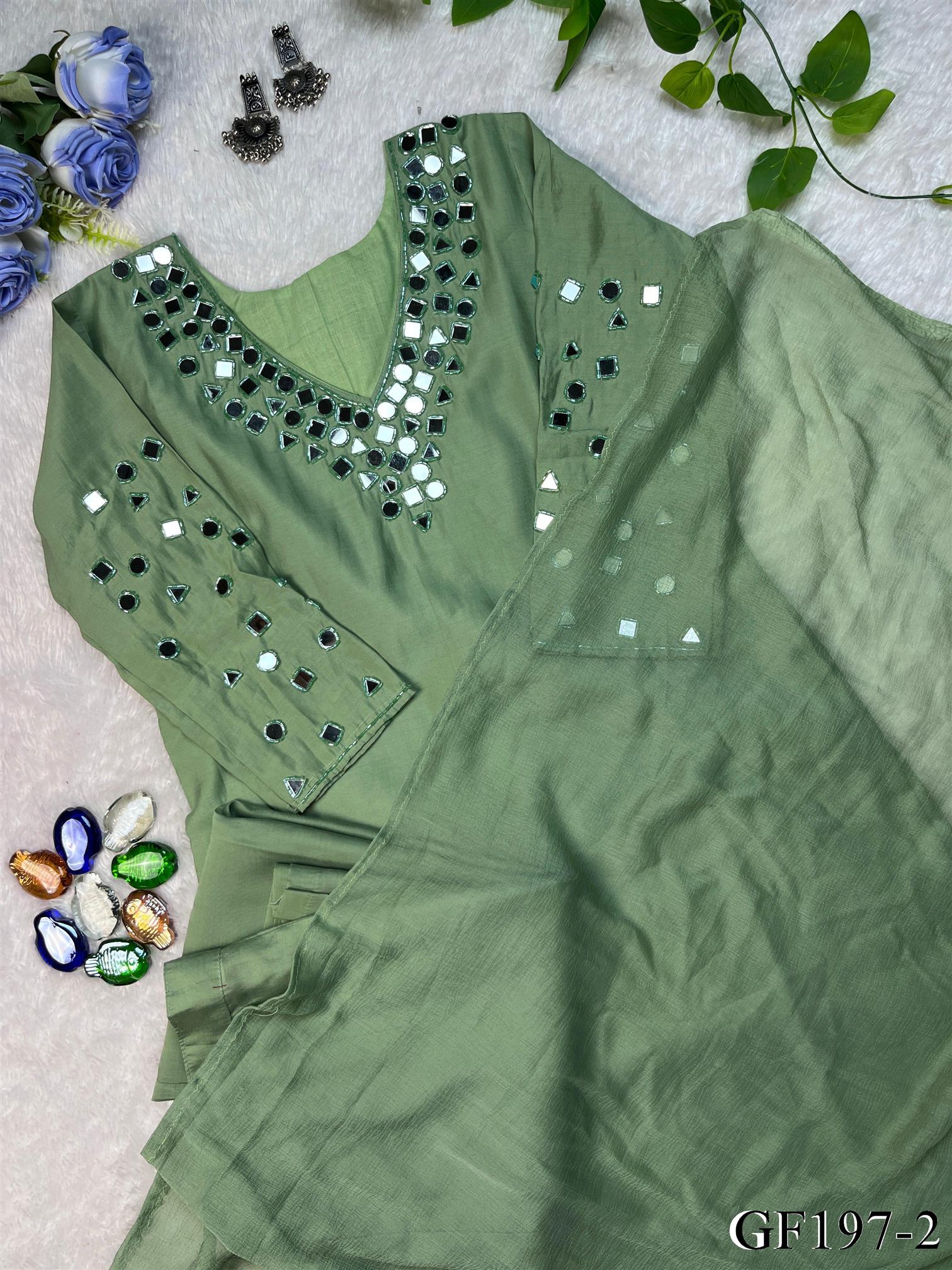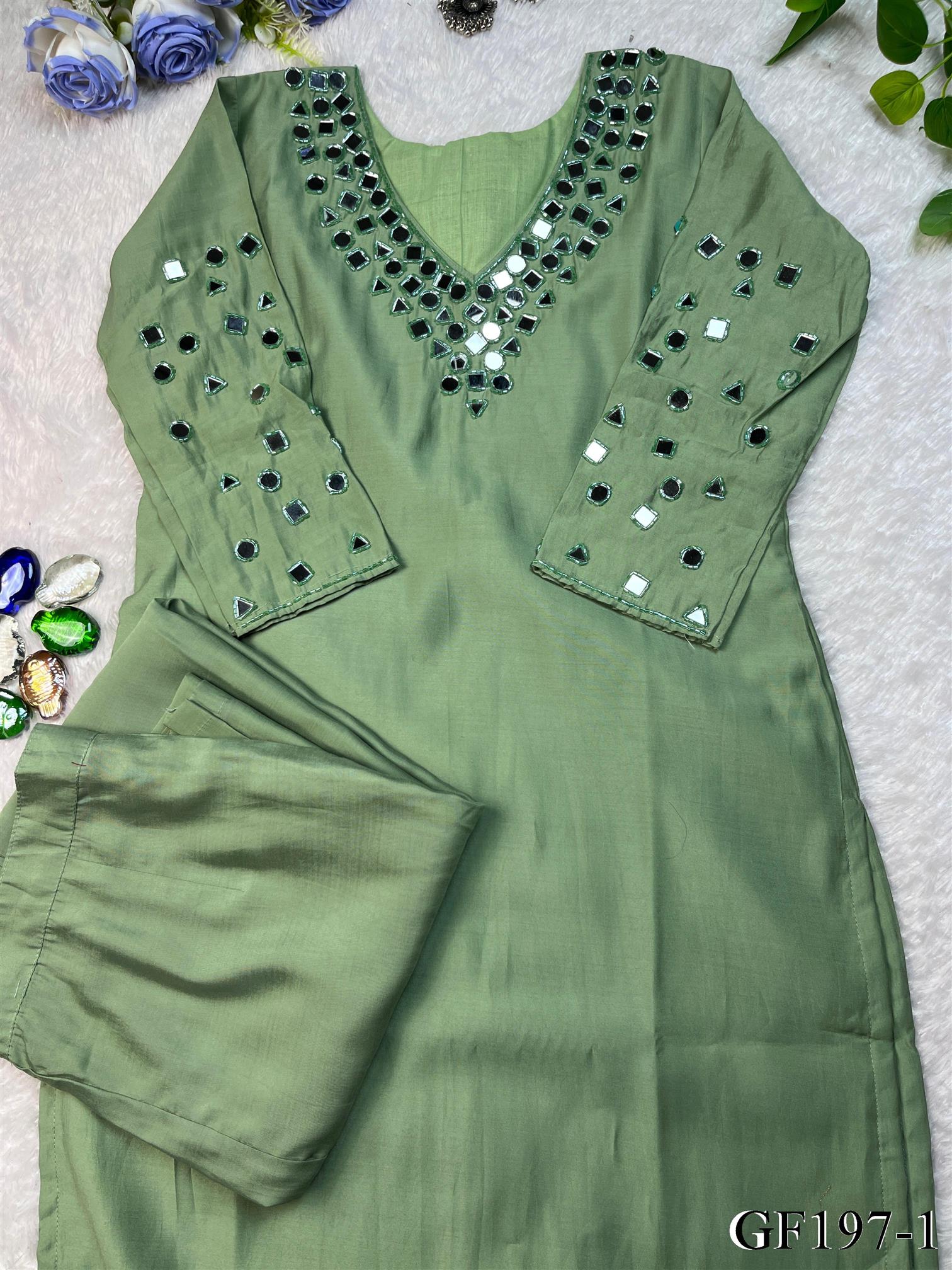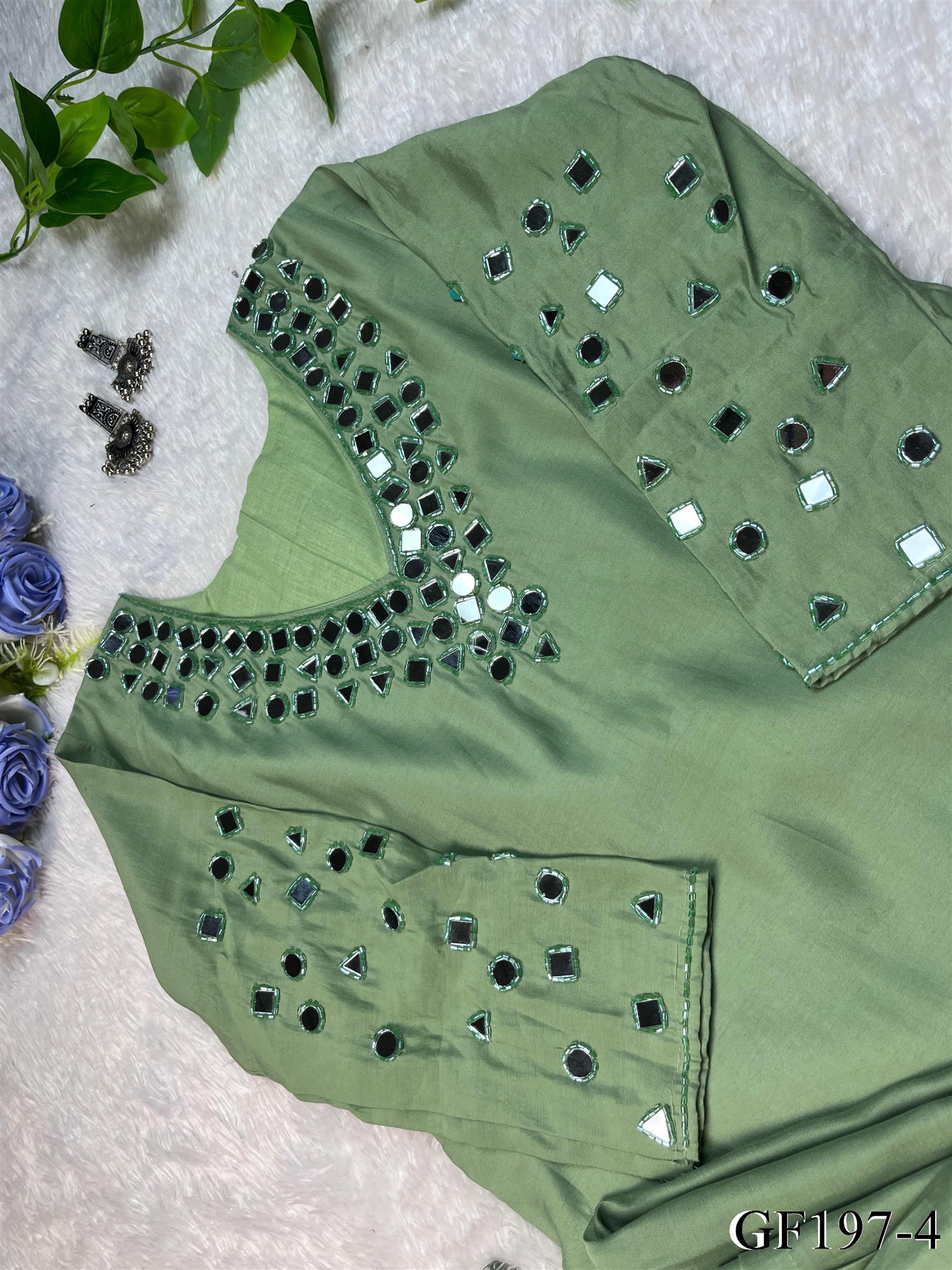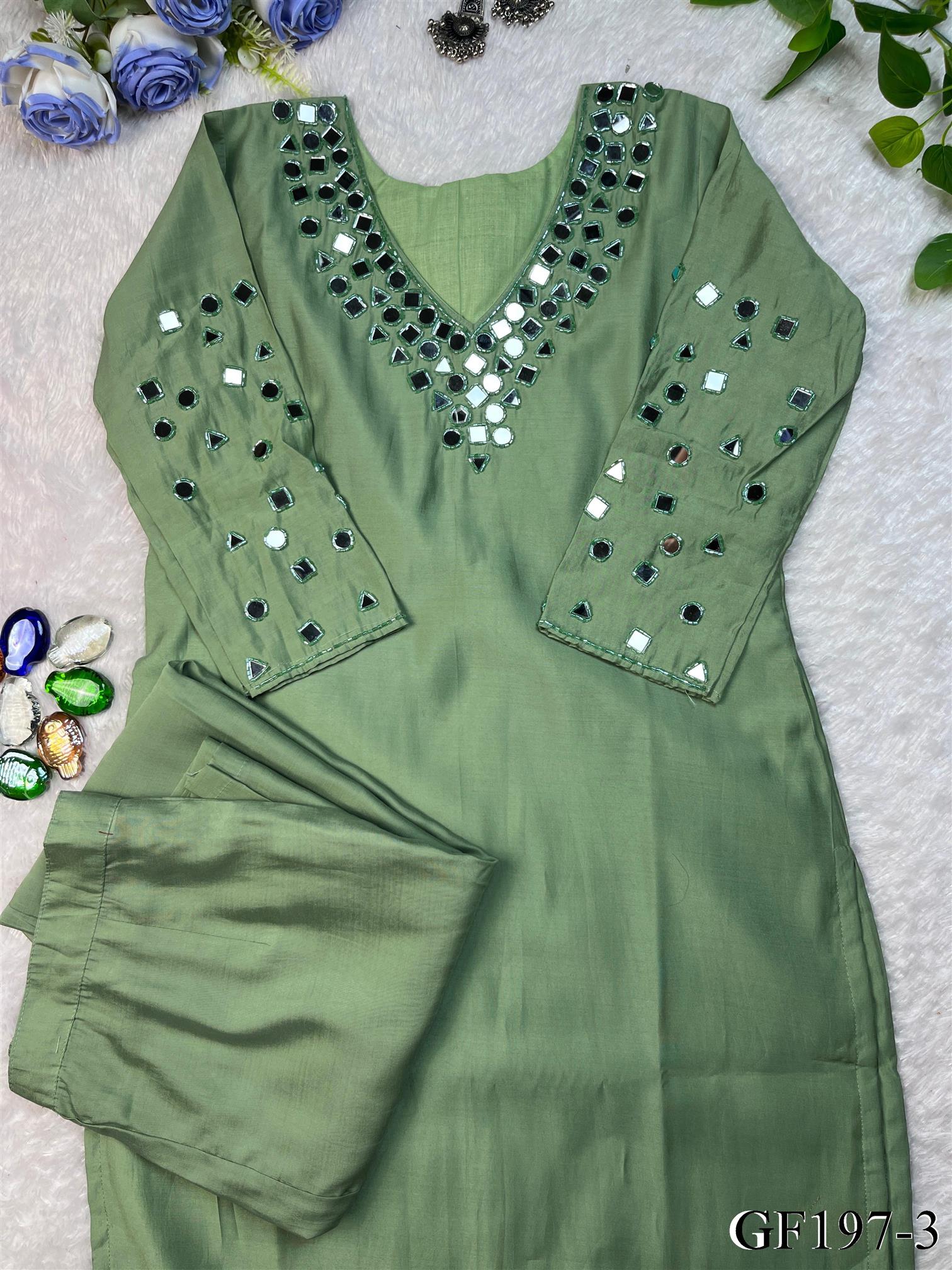 Pista Color Premium Roman Silk Real Mirror Work Top Pent