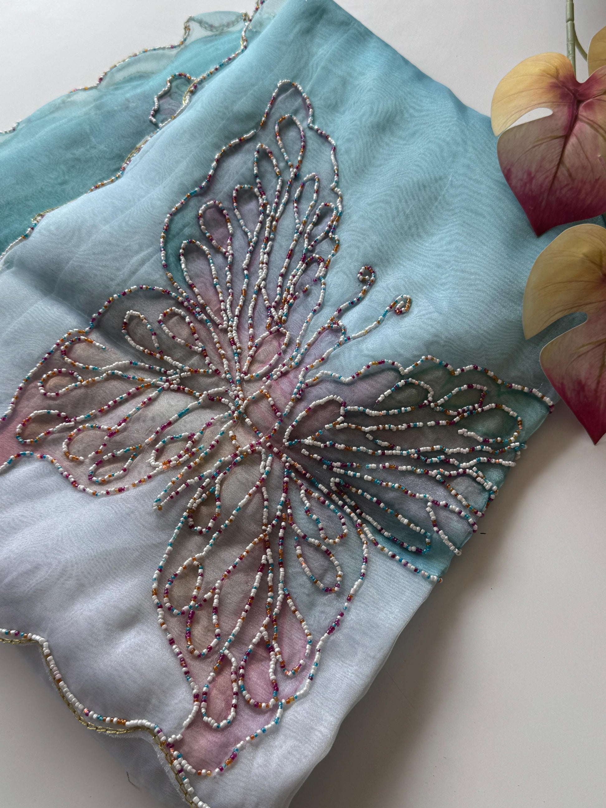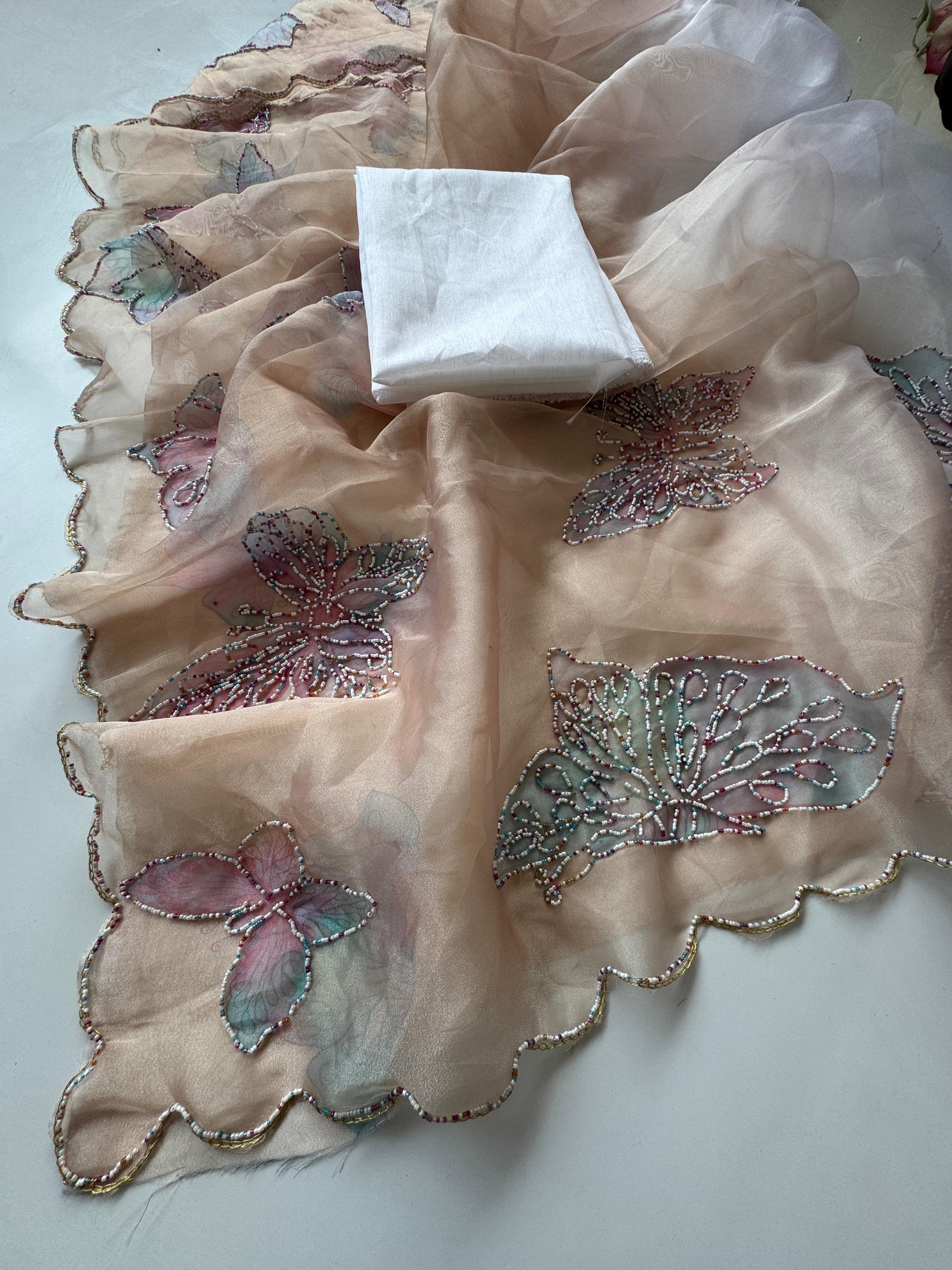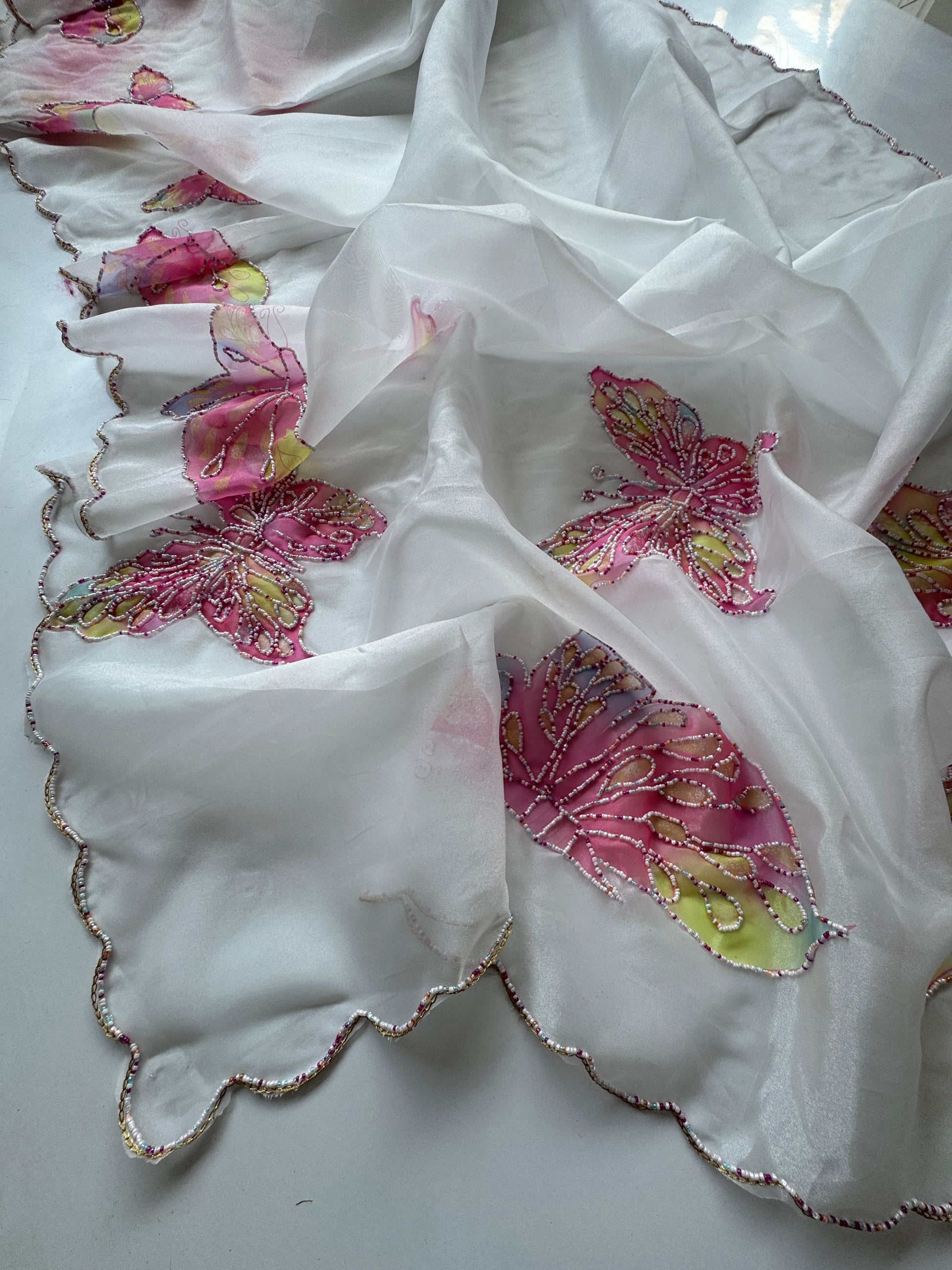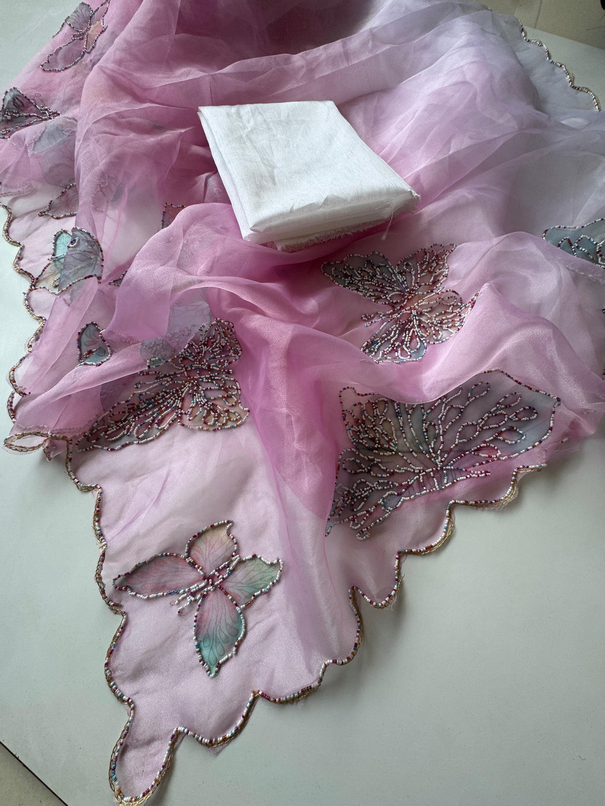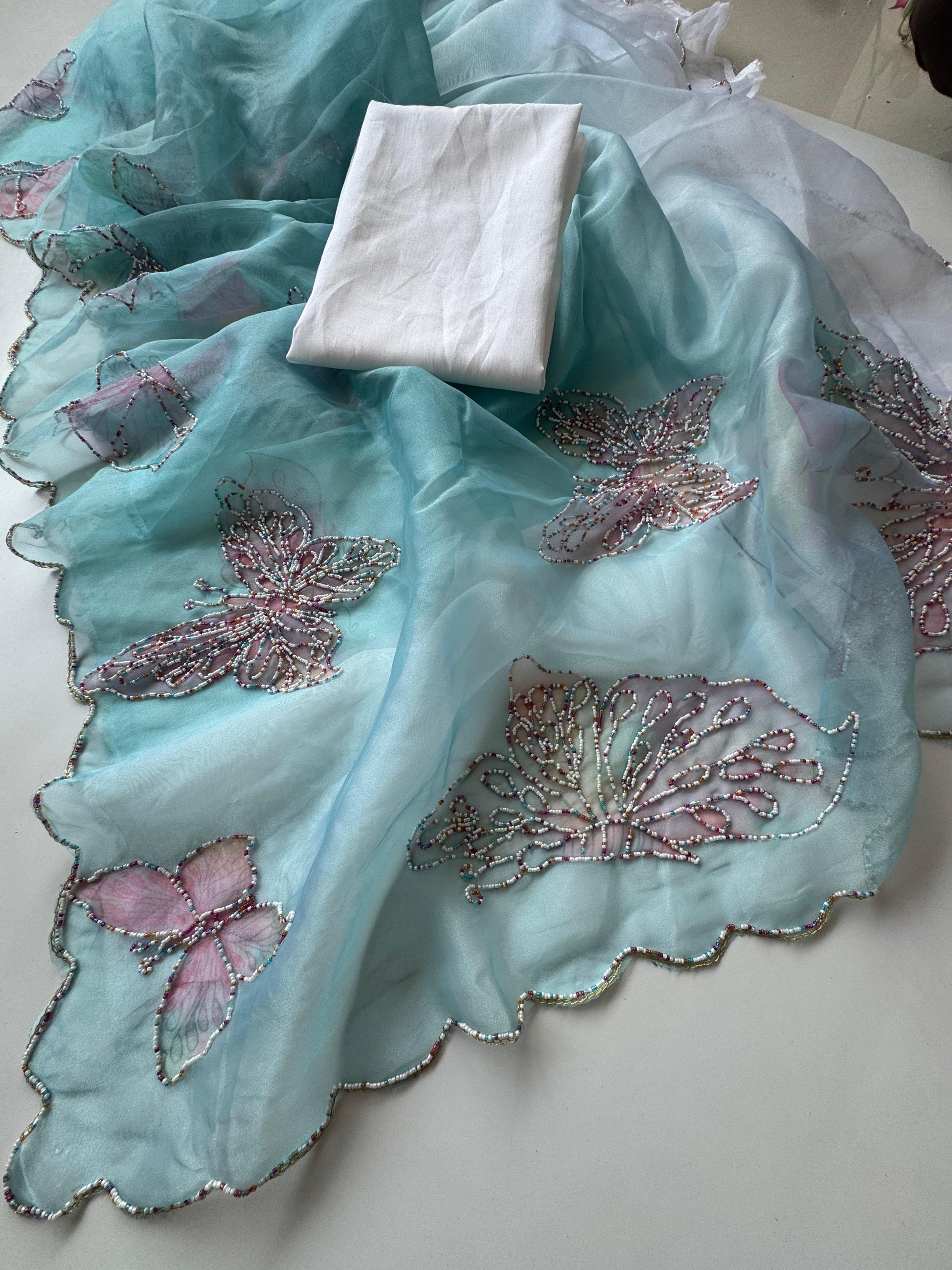Premium Organza Tissue With Butterfly Work Saree