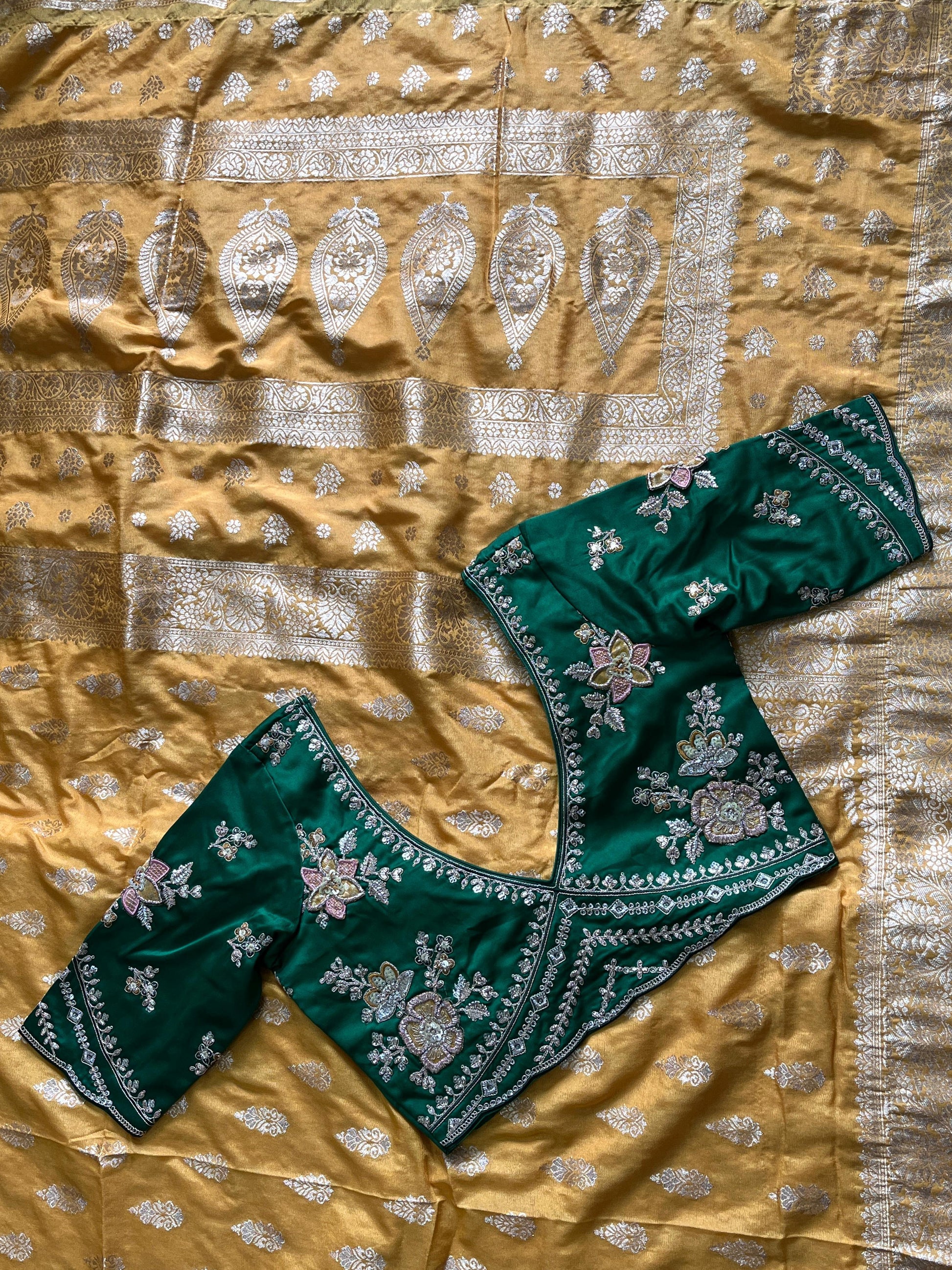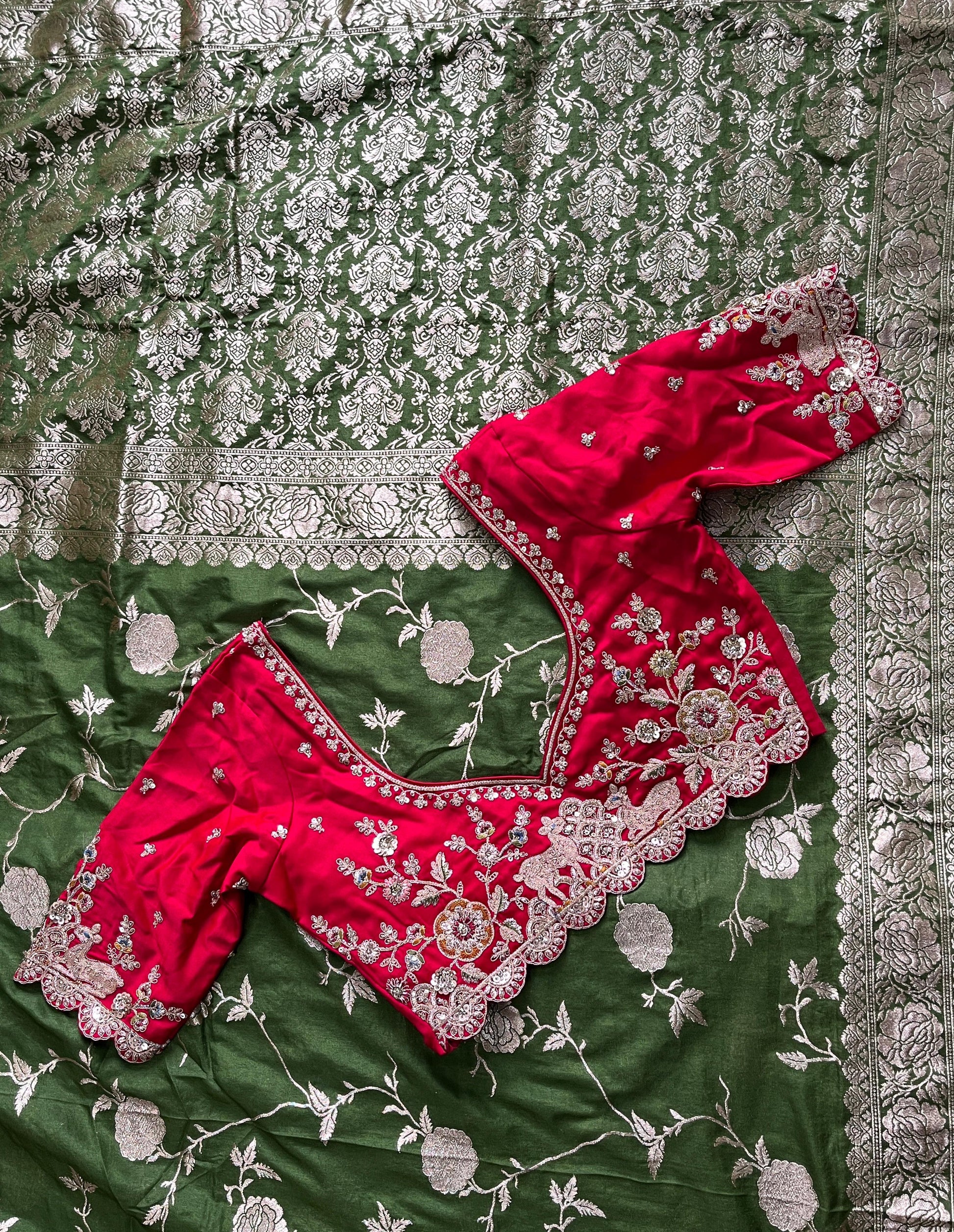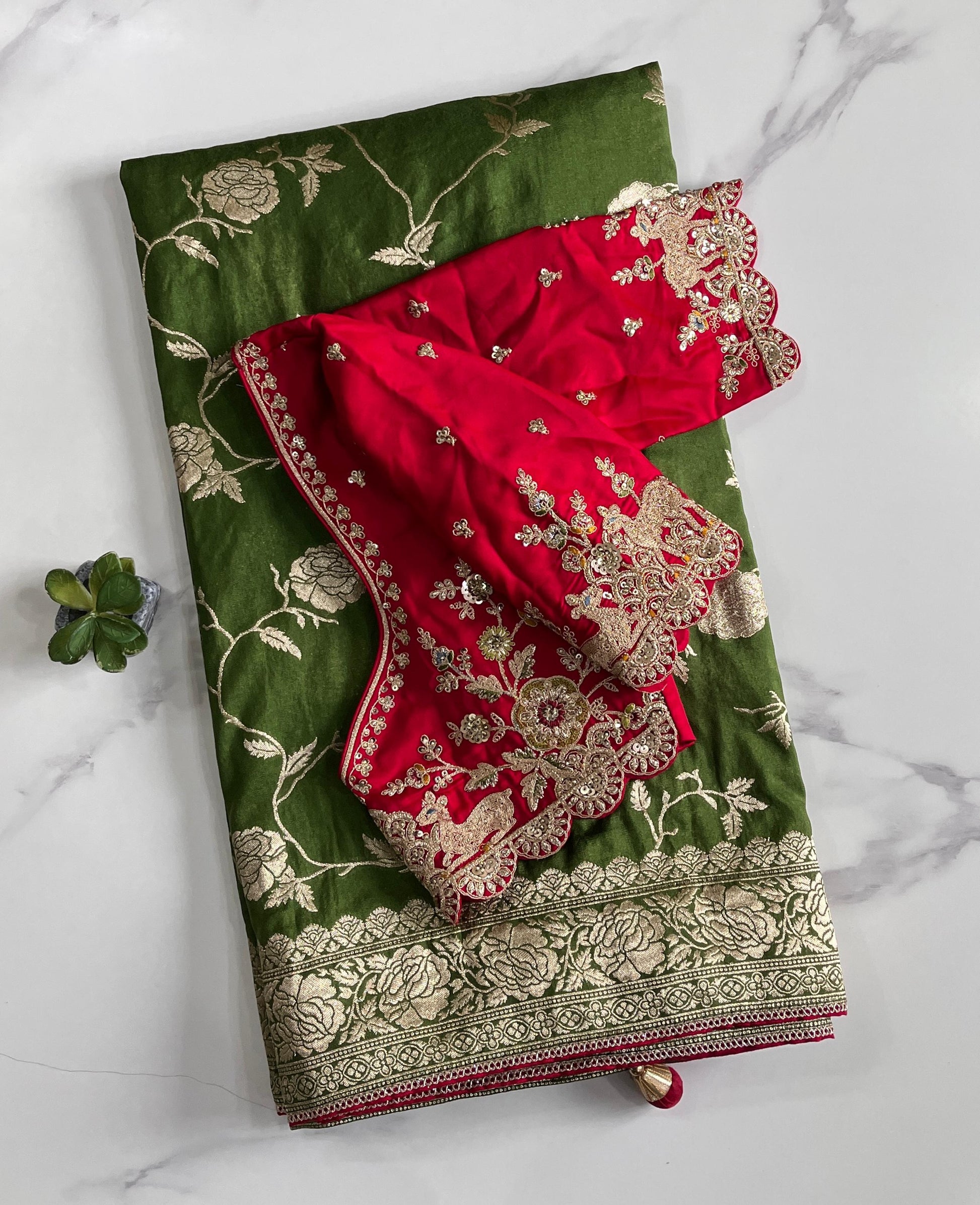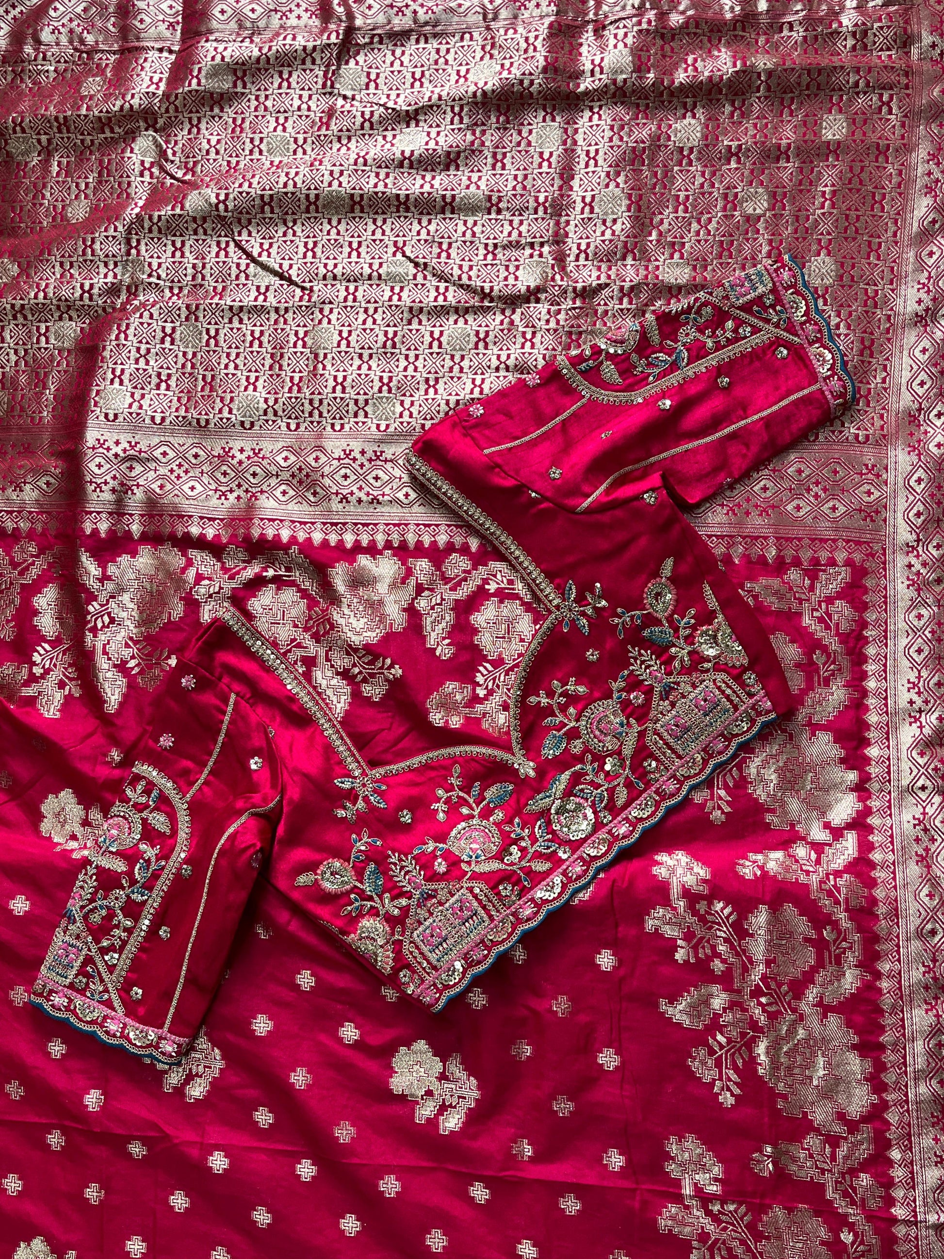 Pure Banarasi Embroidery Work With Handwooven Pallu Saree