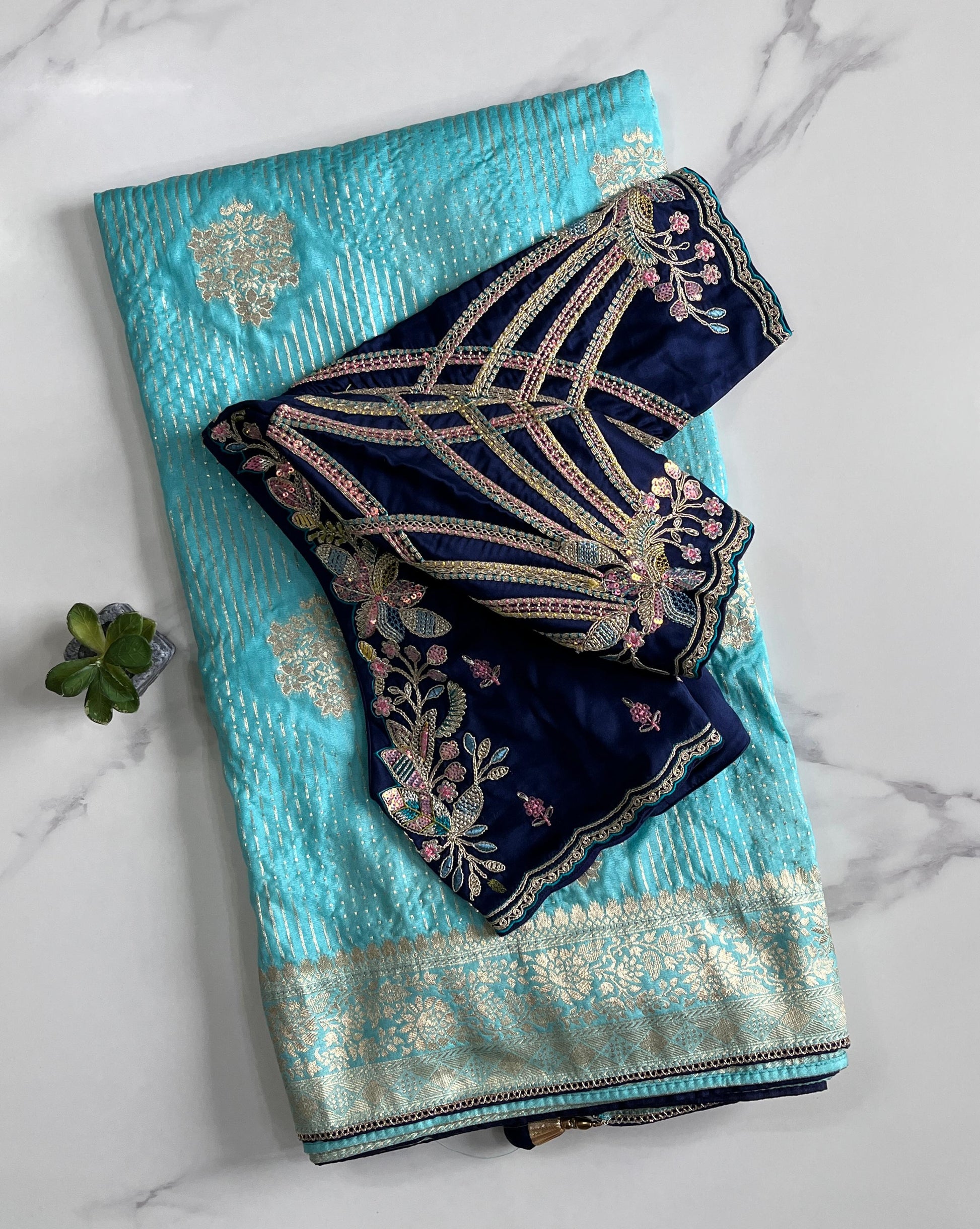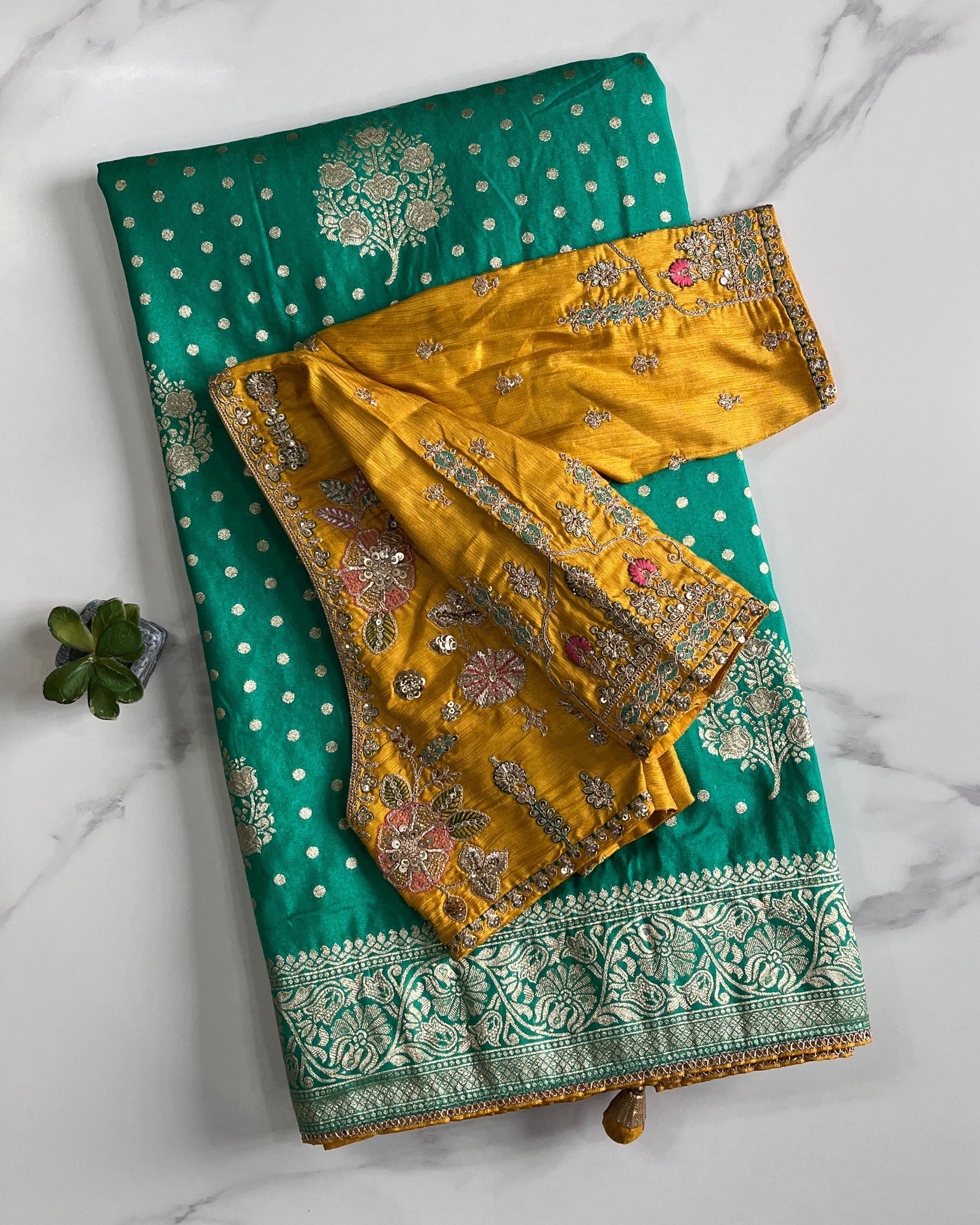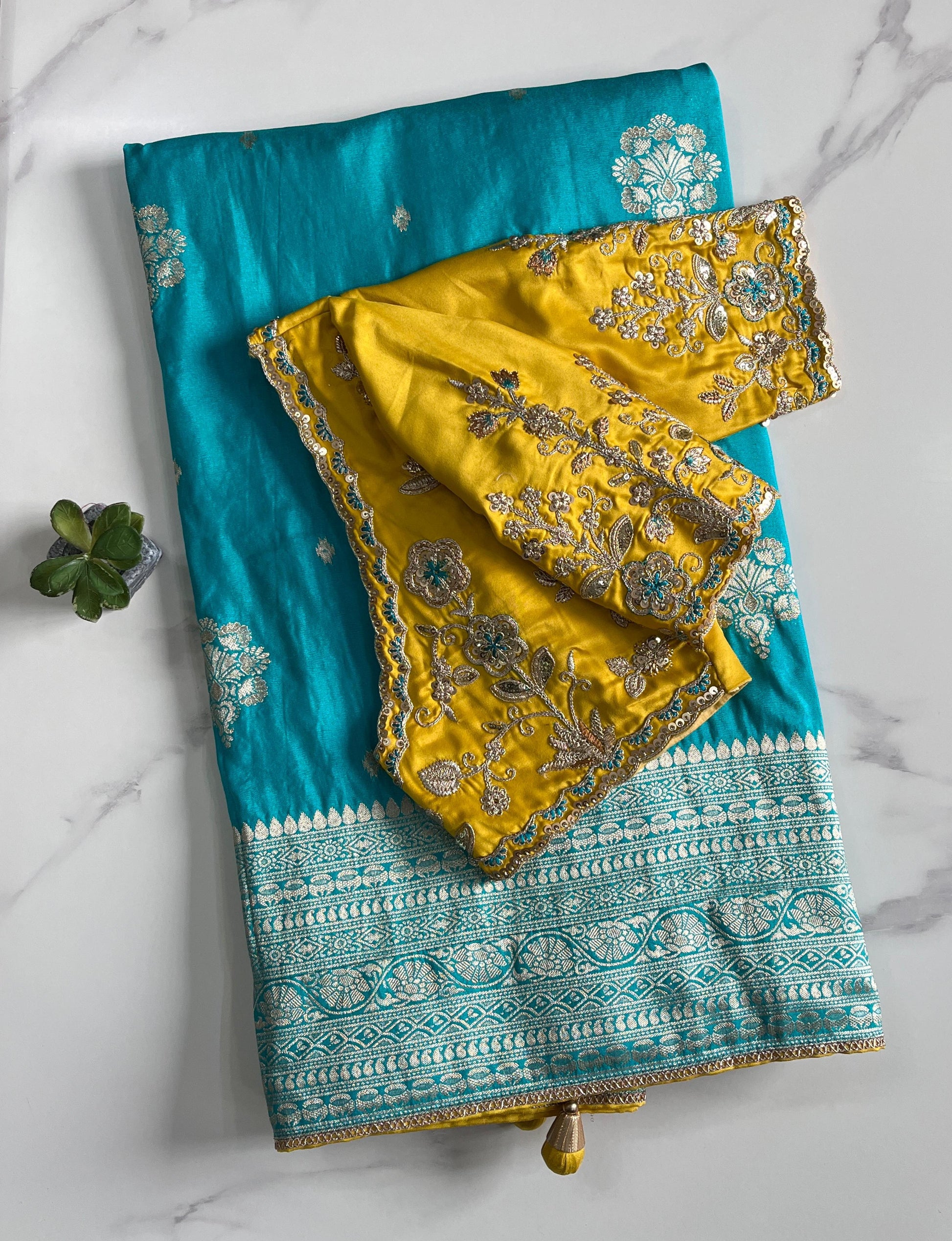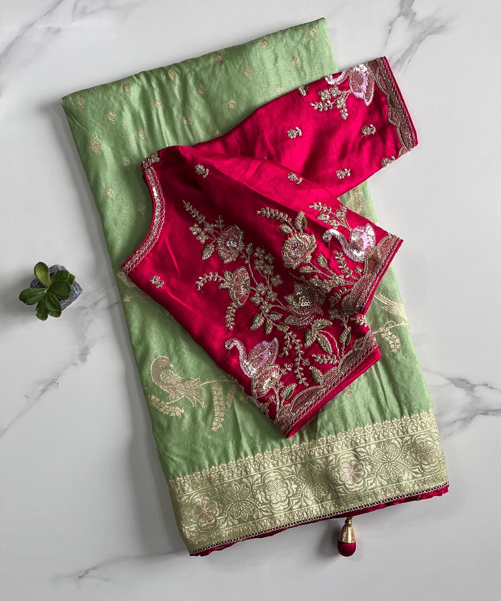 Pure Banarasi Embroidery Work With Handwooven Pallu Saree