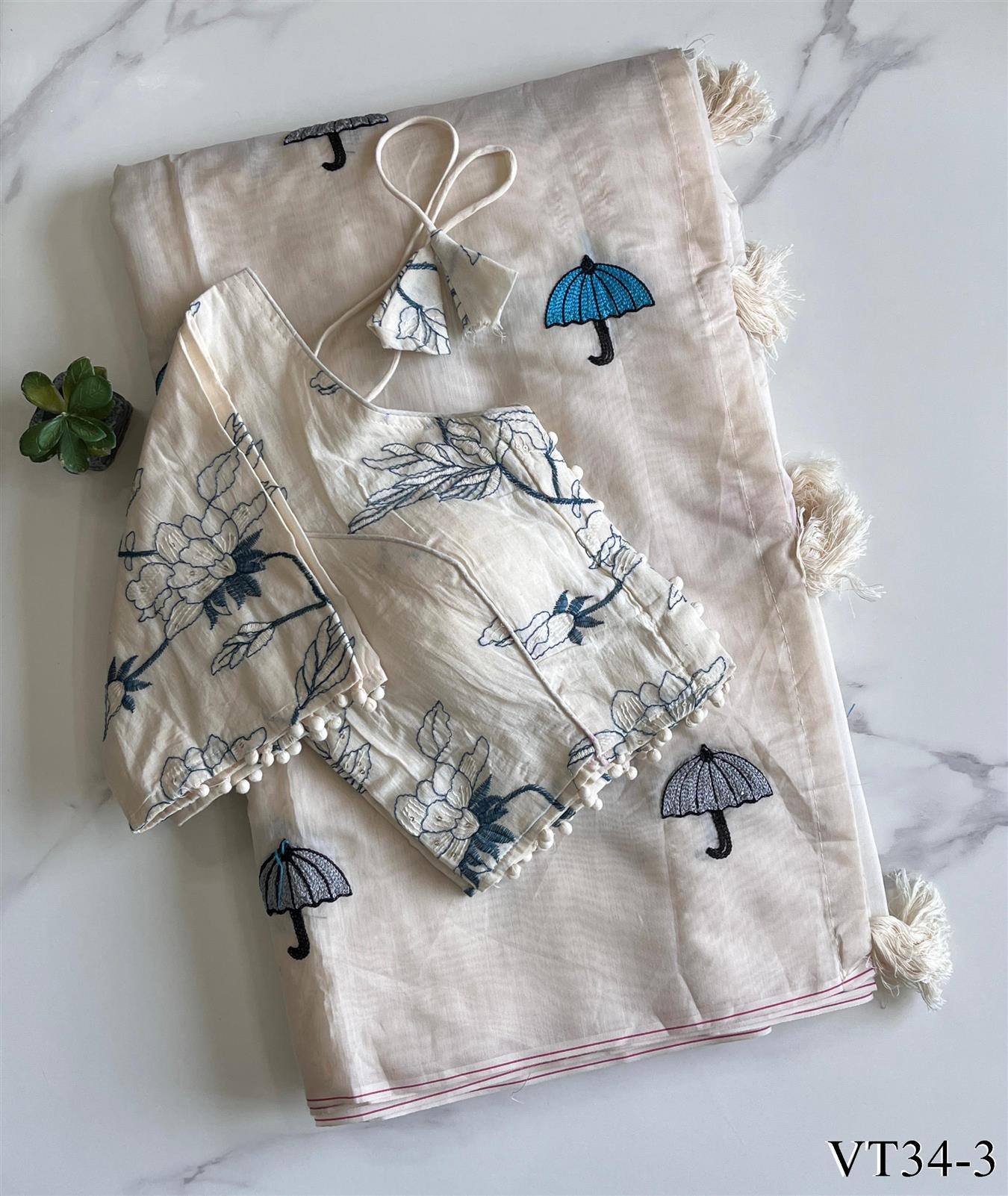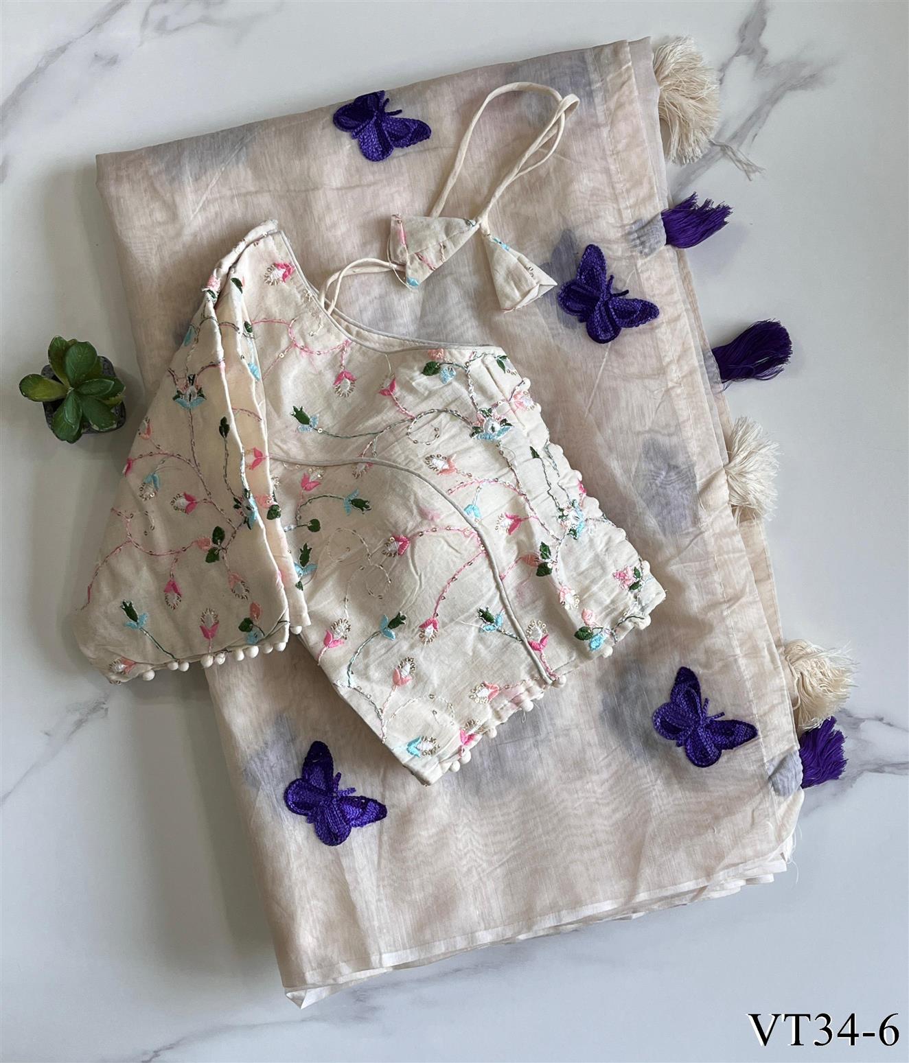 Pure Chanderi Cotton Fabric With Butterfly Work Saree