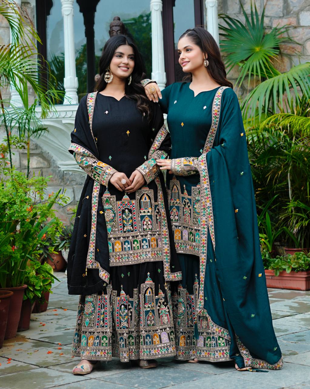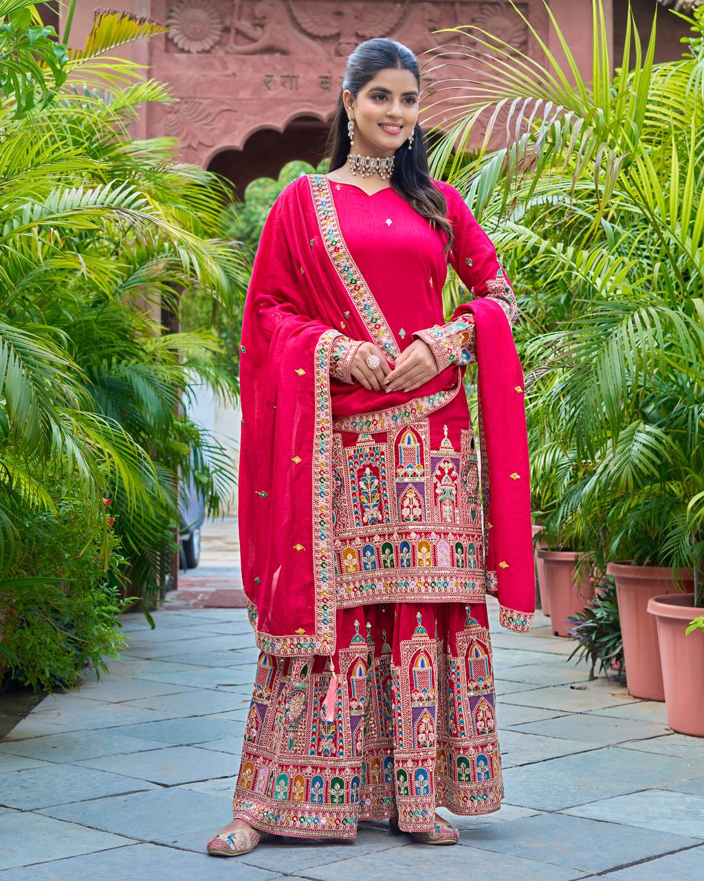 Pure Chinon Silk Heavy Embroidery Work Top Plazzo