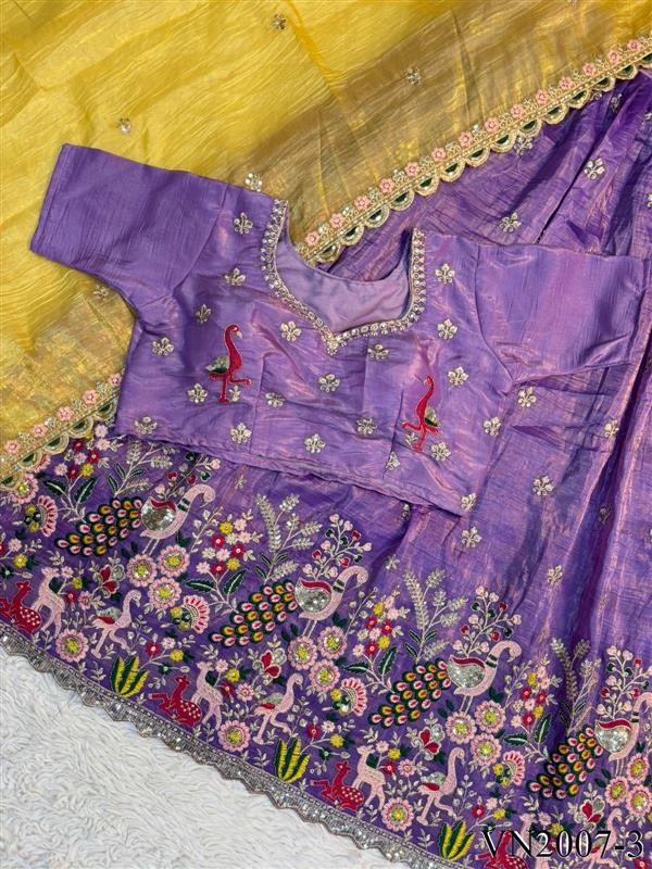 Pure Gold Crush Silk With Embroidery Sequience Work Lehennga