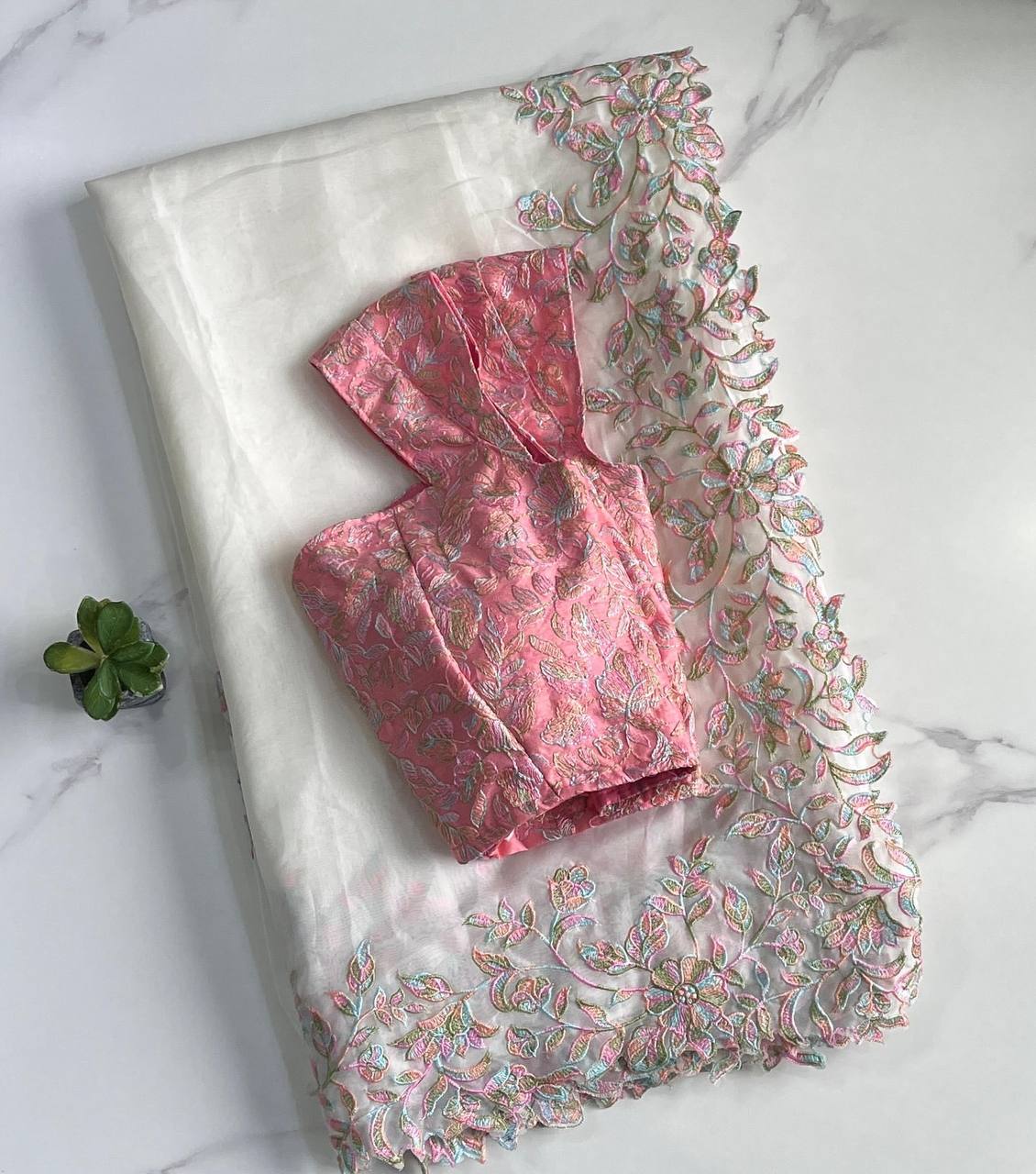 Pure Taby Silk Banglory Silk Embroidery Work Saree