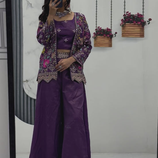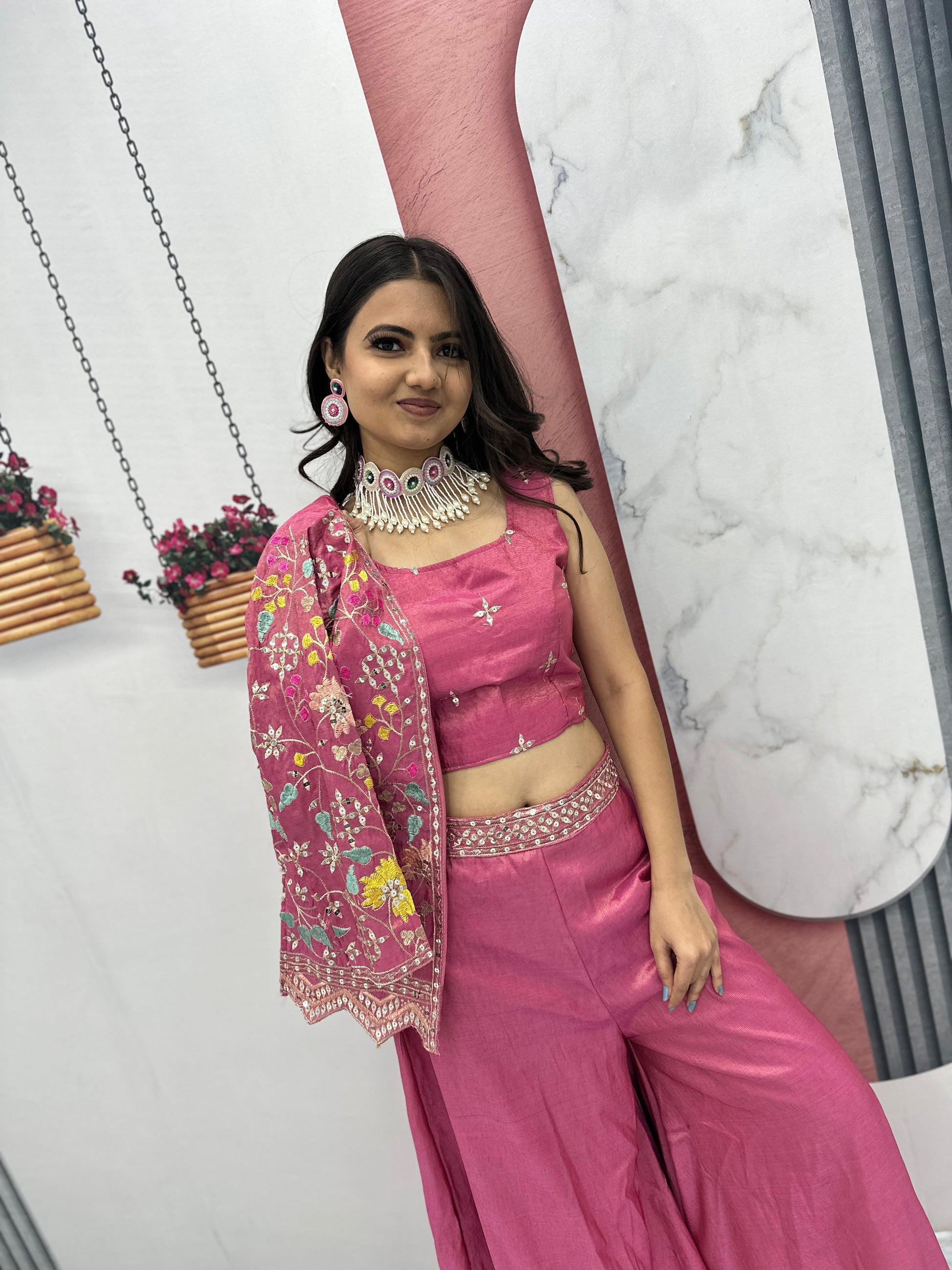 PURE TISSUE SHIMMER SHRUG WITH CHOLI PLAZZO