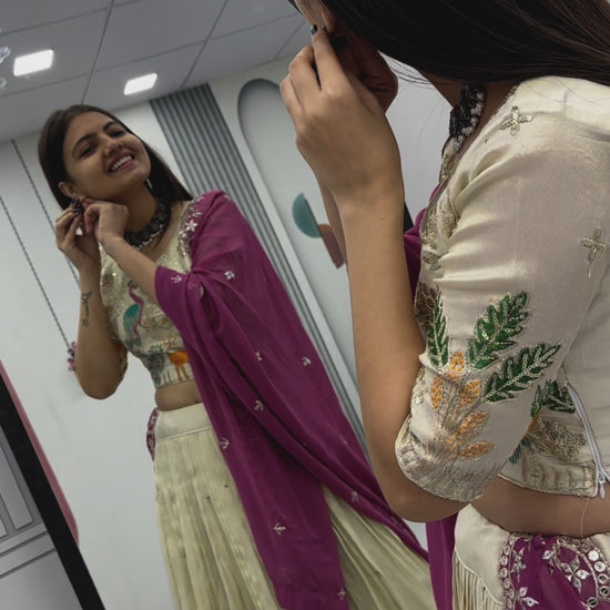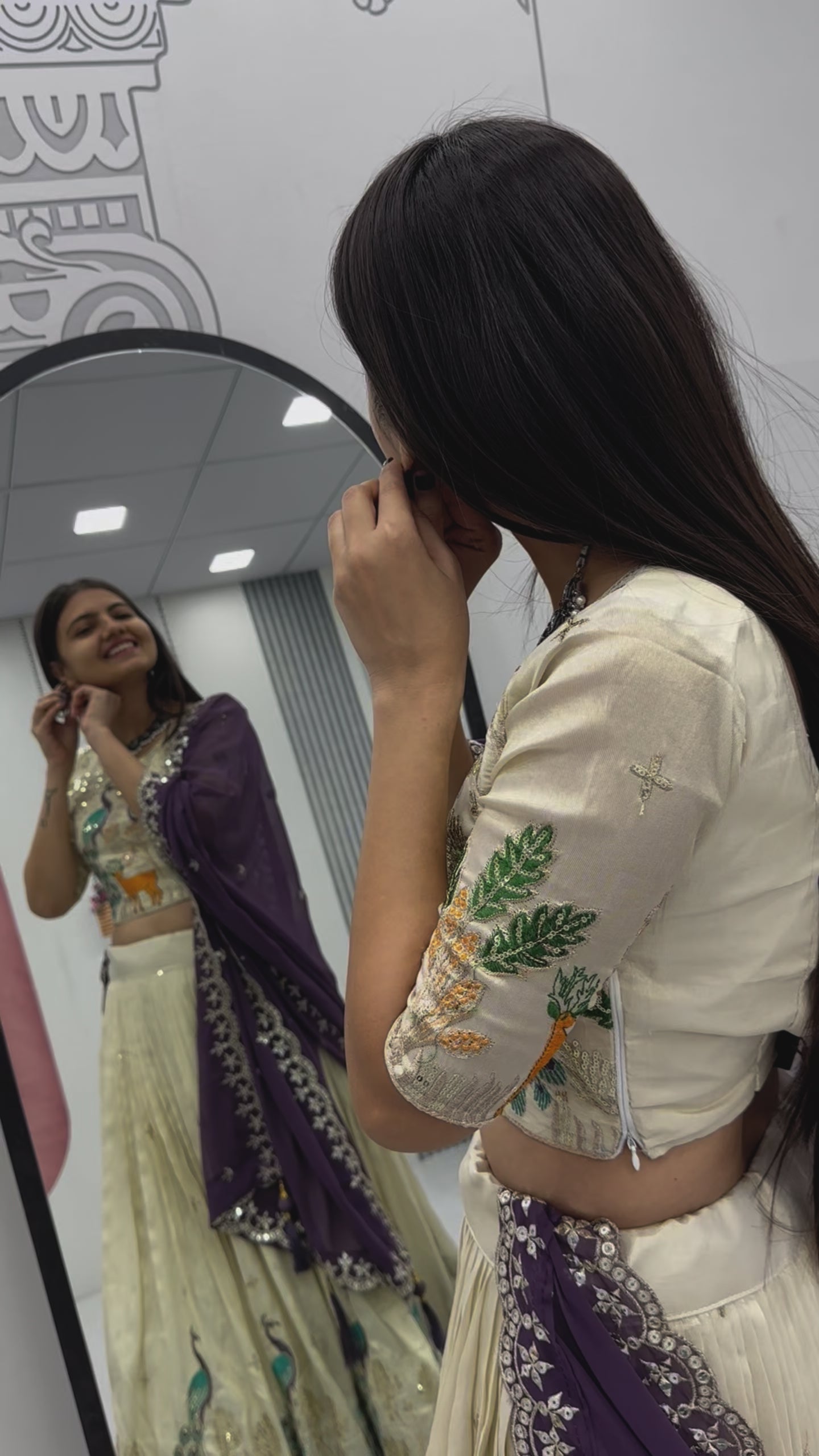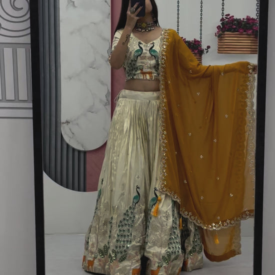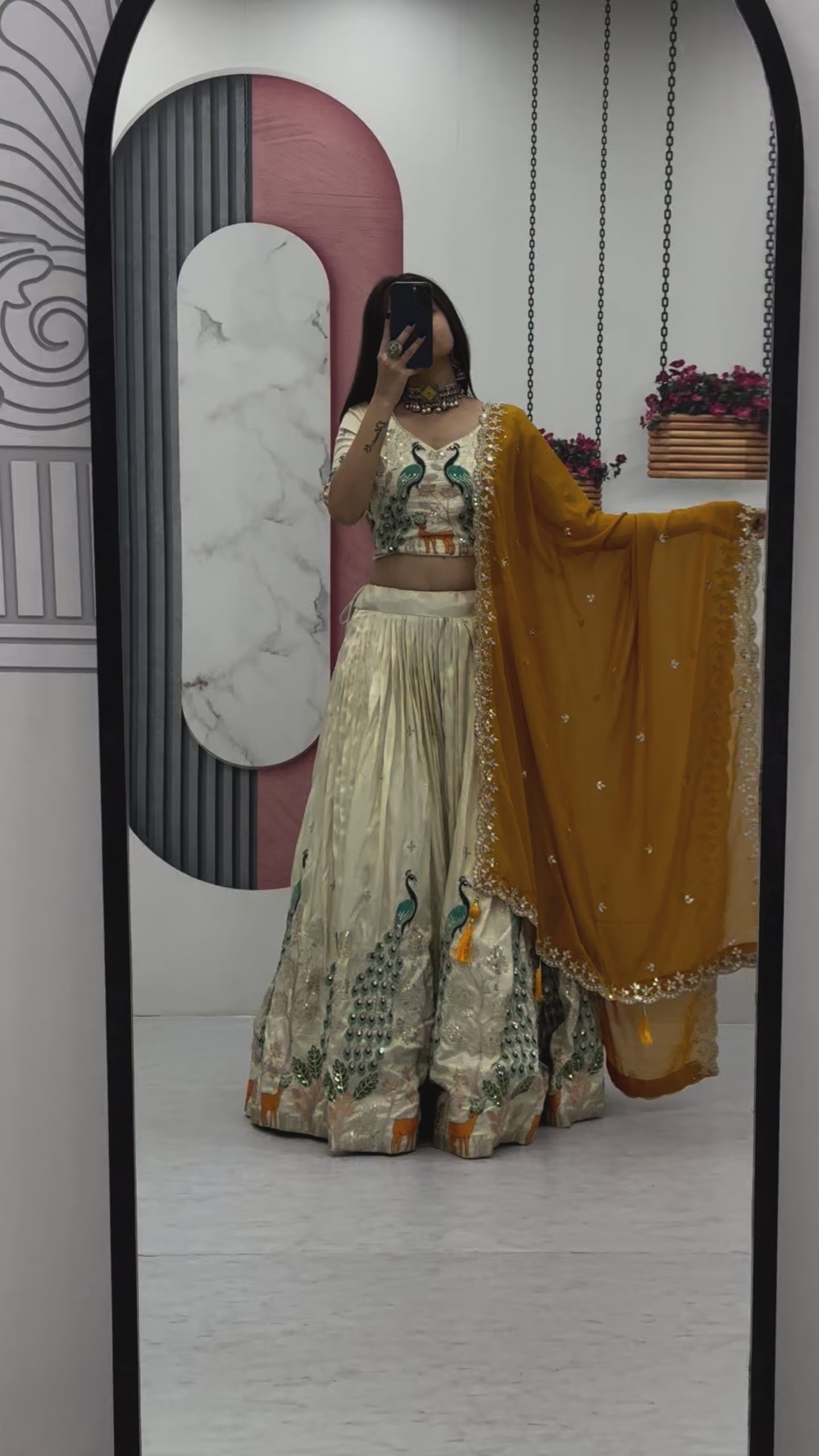 PURE TISSUE SILK PEACOCK WORK FULL READY MADE LEHENGA CHOLI