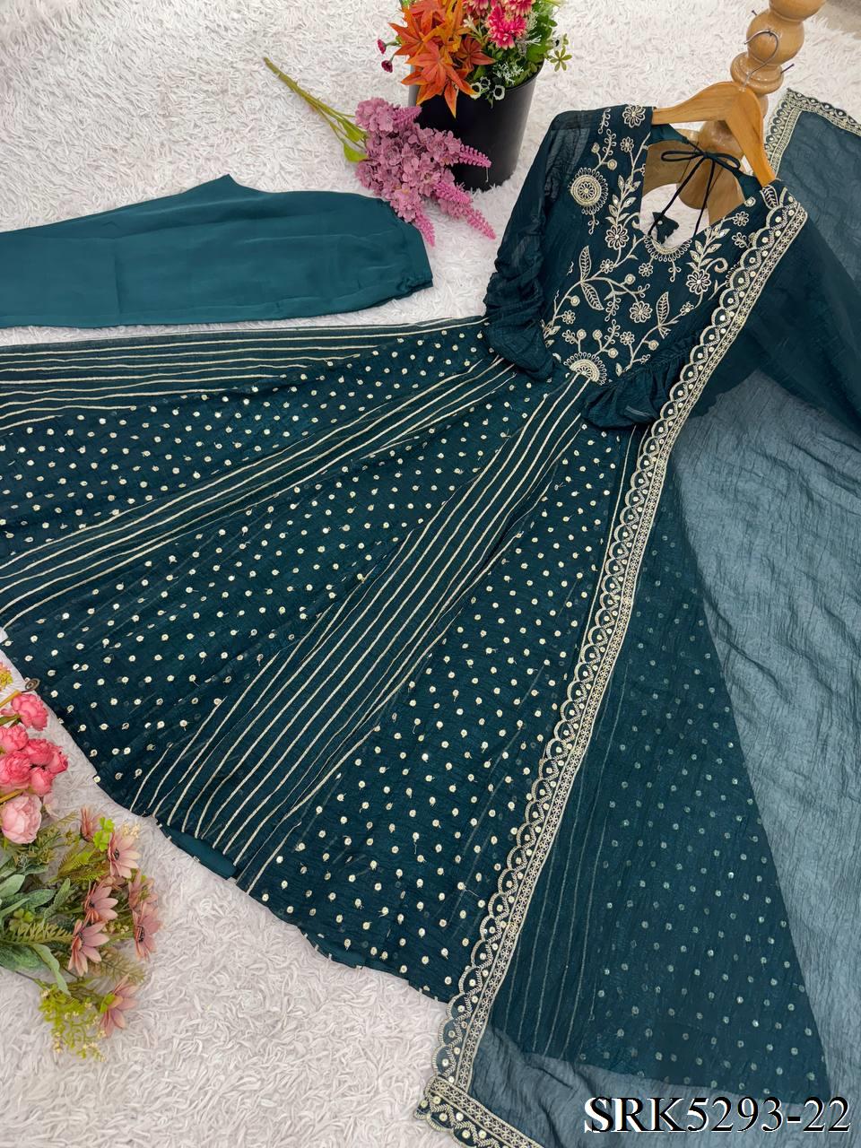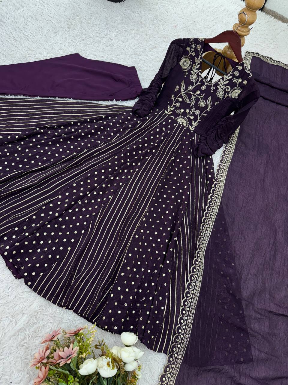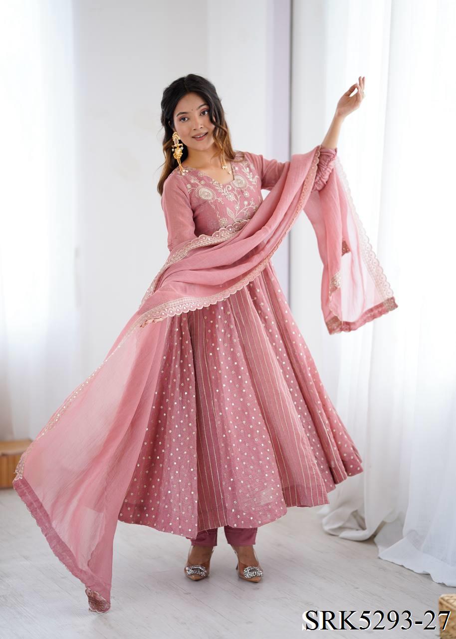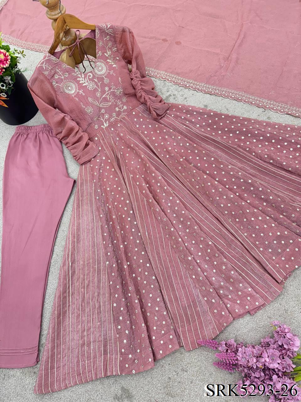Purple Color Crunchy Silk Embroidery Work Top Plazzo