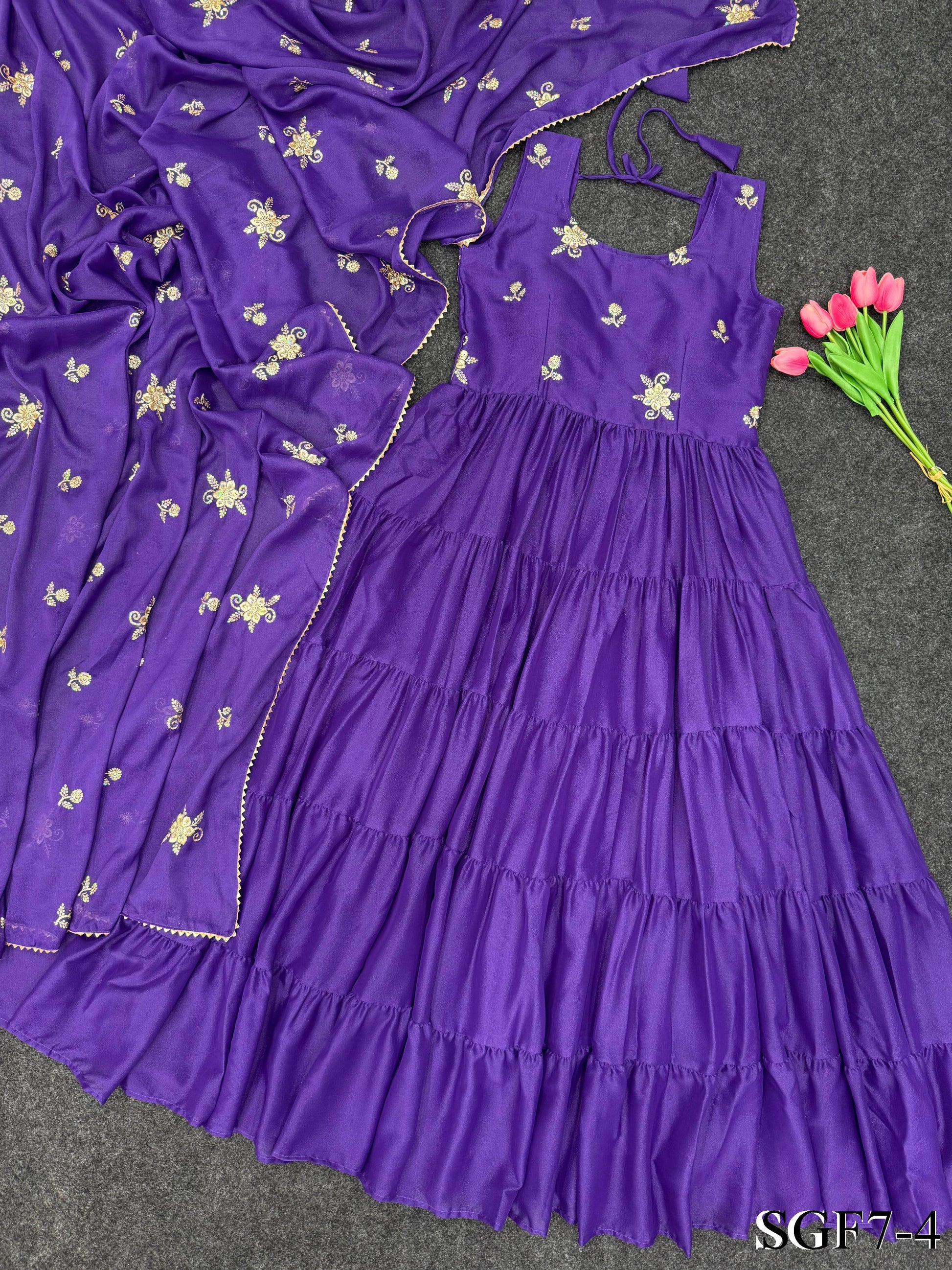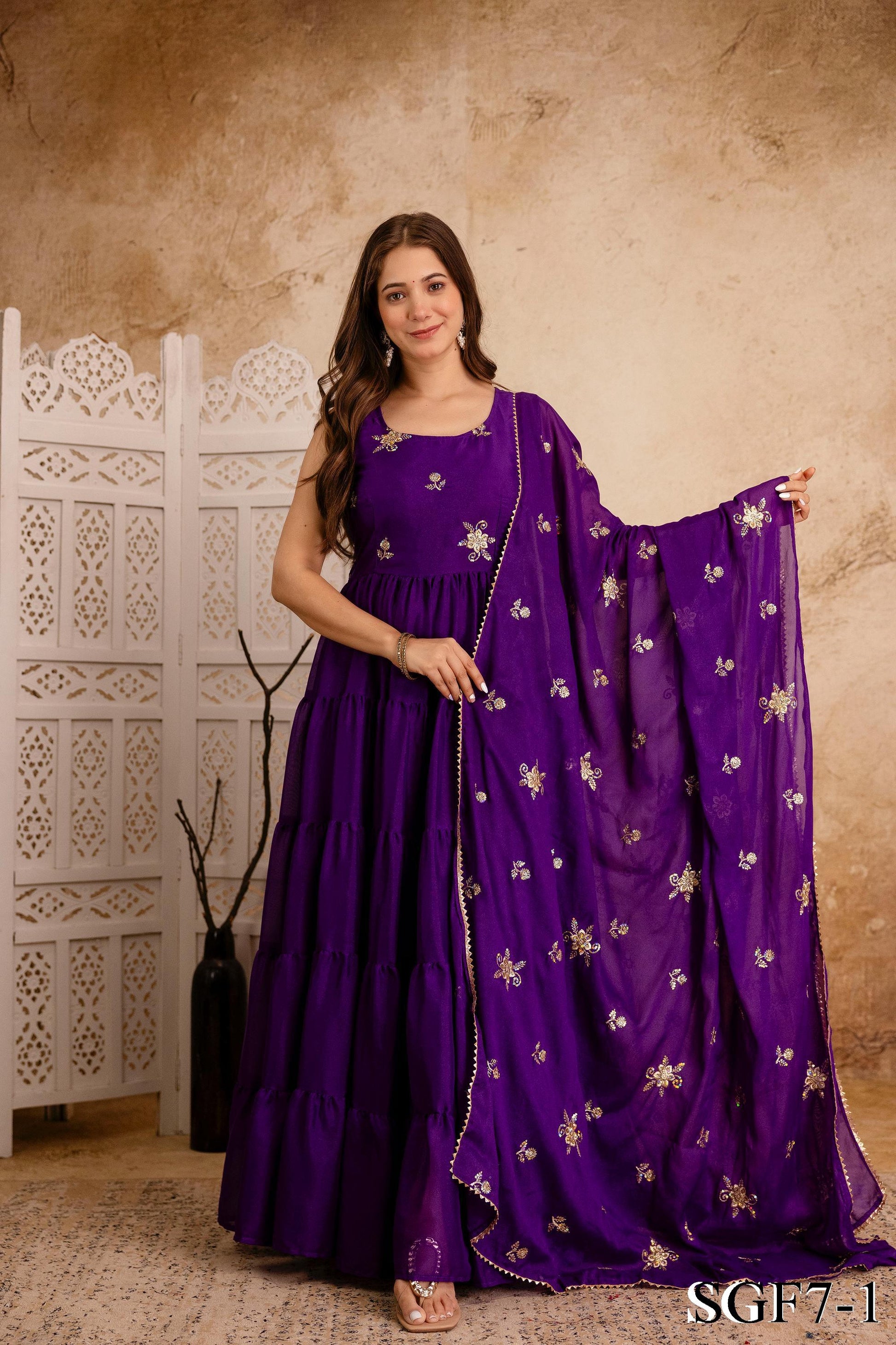 Purple Color Heavy Star Georgette Embroidery Work Anarkali