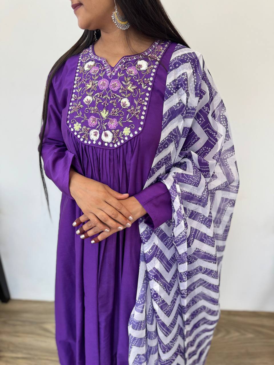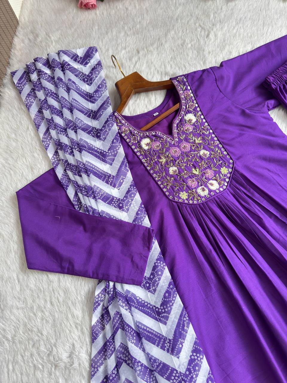 Purple Color Viscos Silk Hand Work Gown