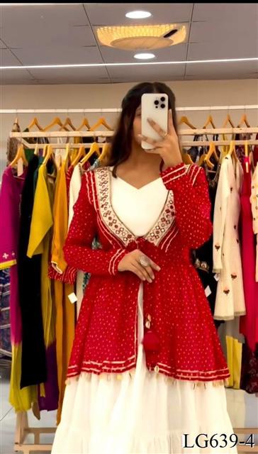 Red And White Color Georgette With Real Mirror Work Koti Lehenga