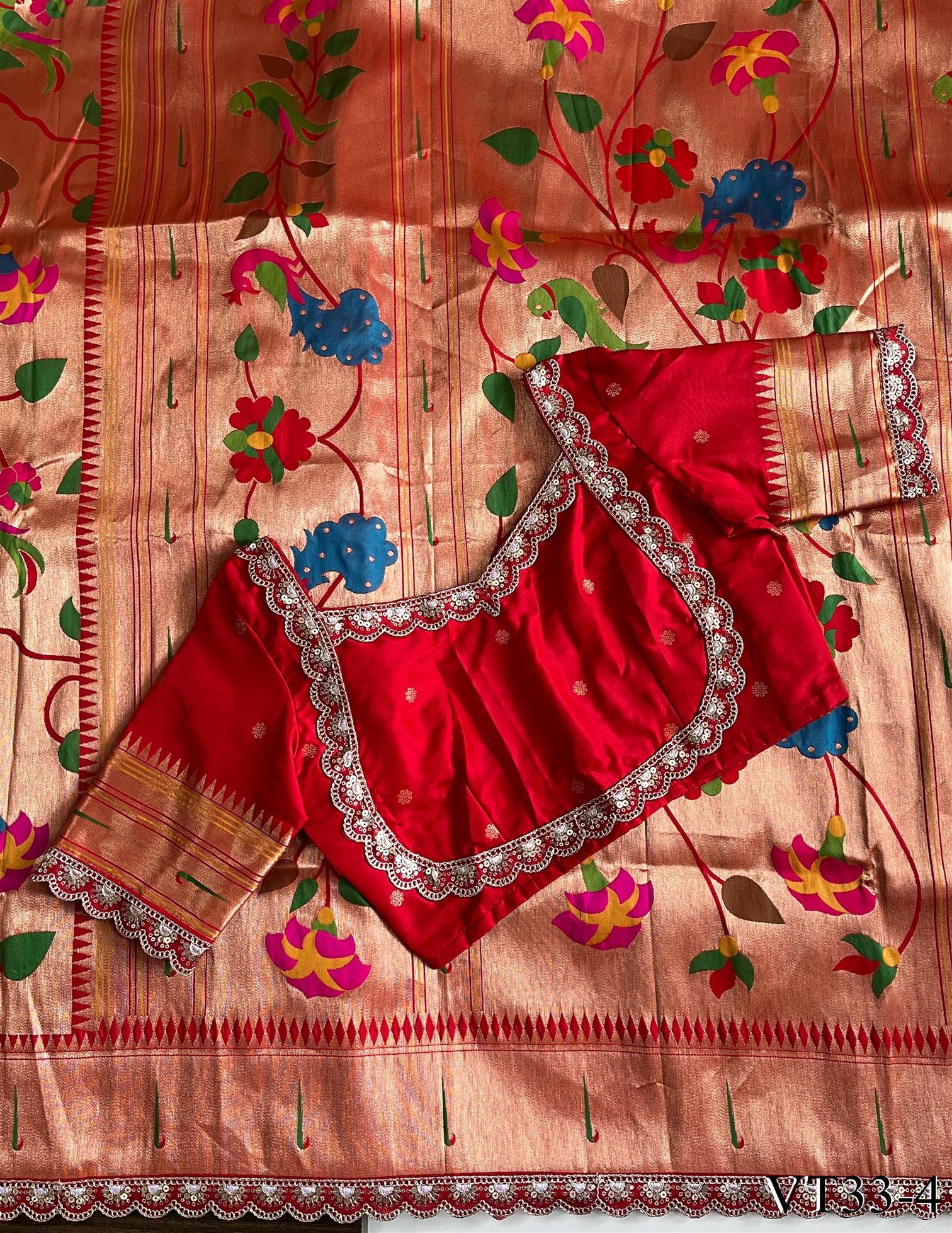 Red Color Banarasi Pattu Paithani Pallu Saree
