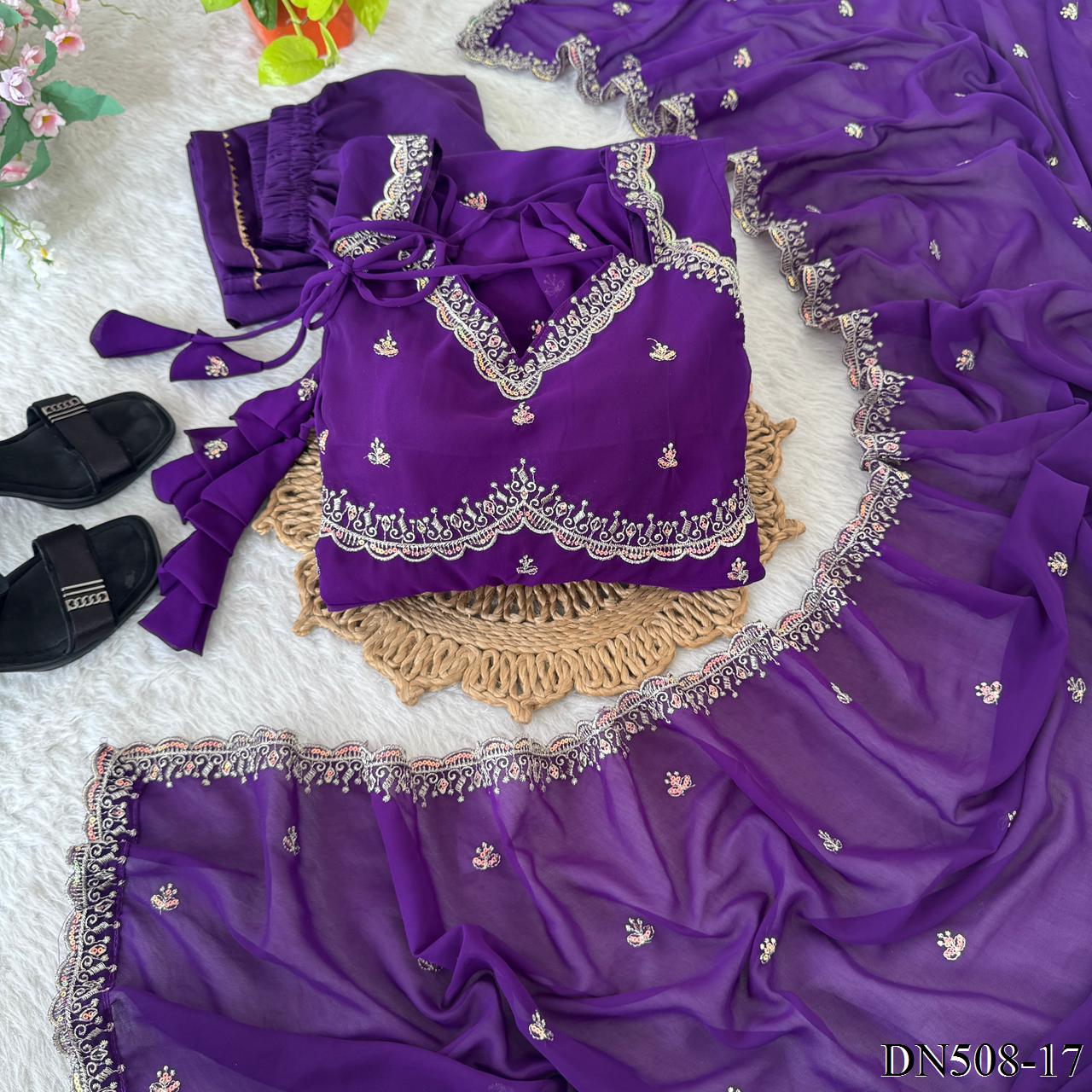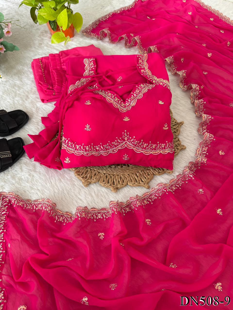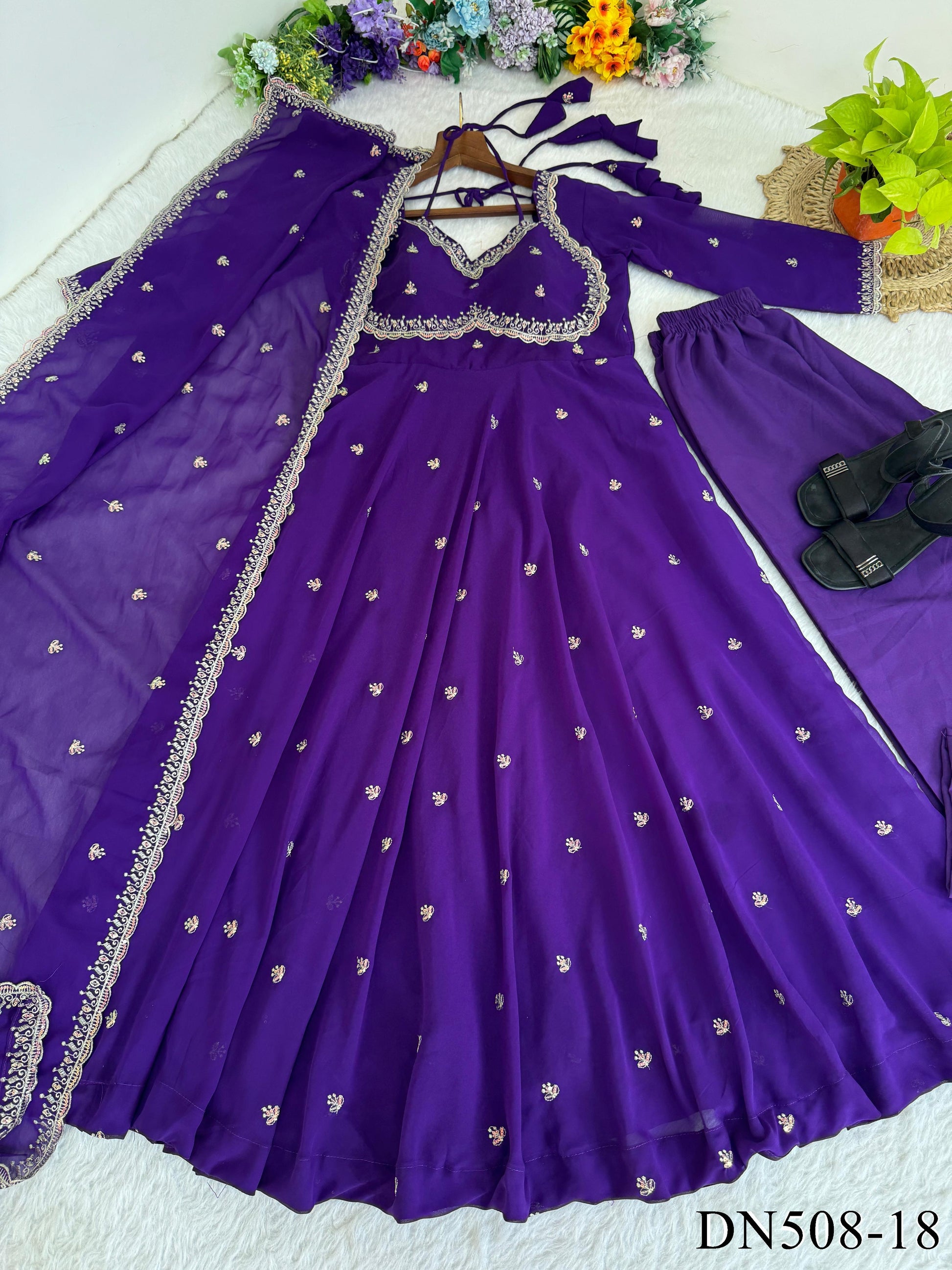 Red Color Fox Georgette Sequience Embroidery Work Gown