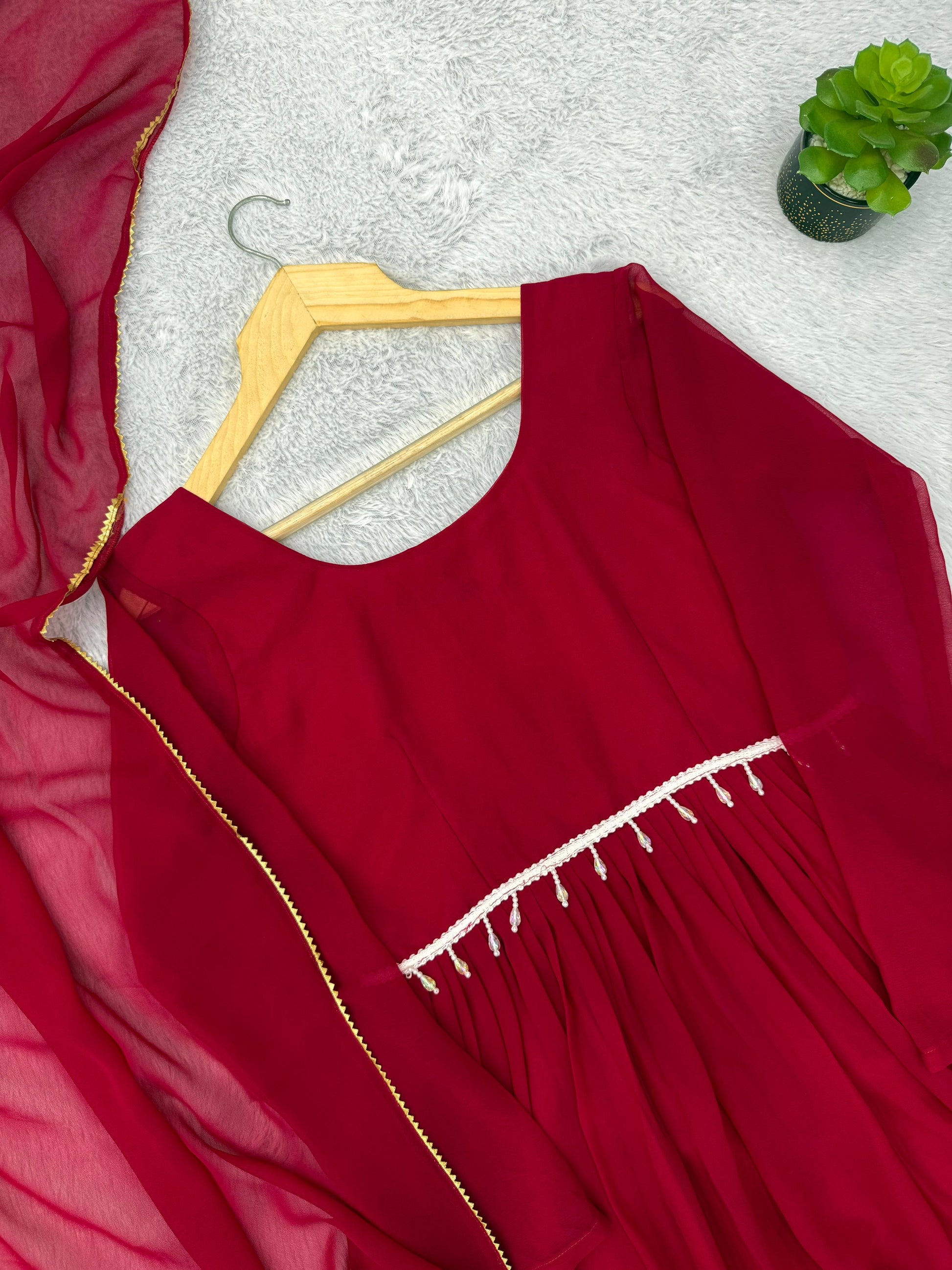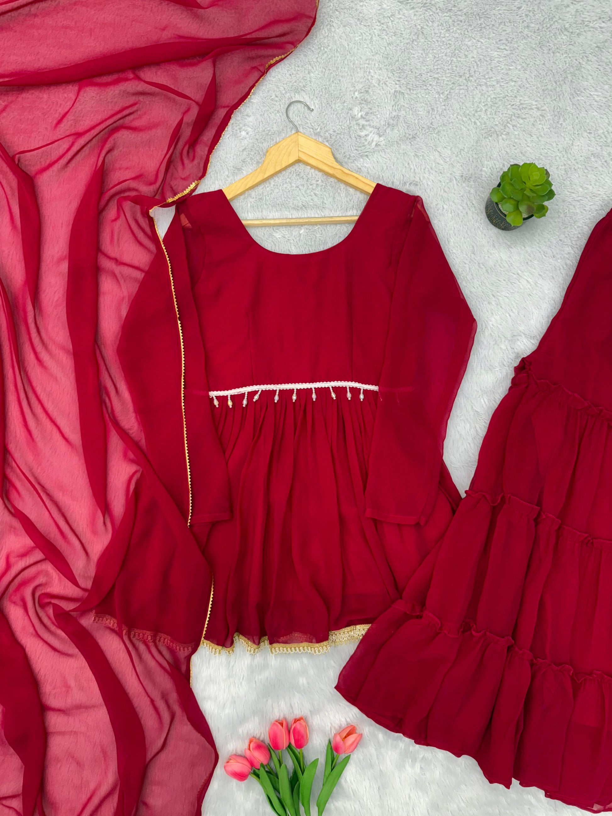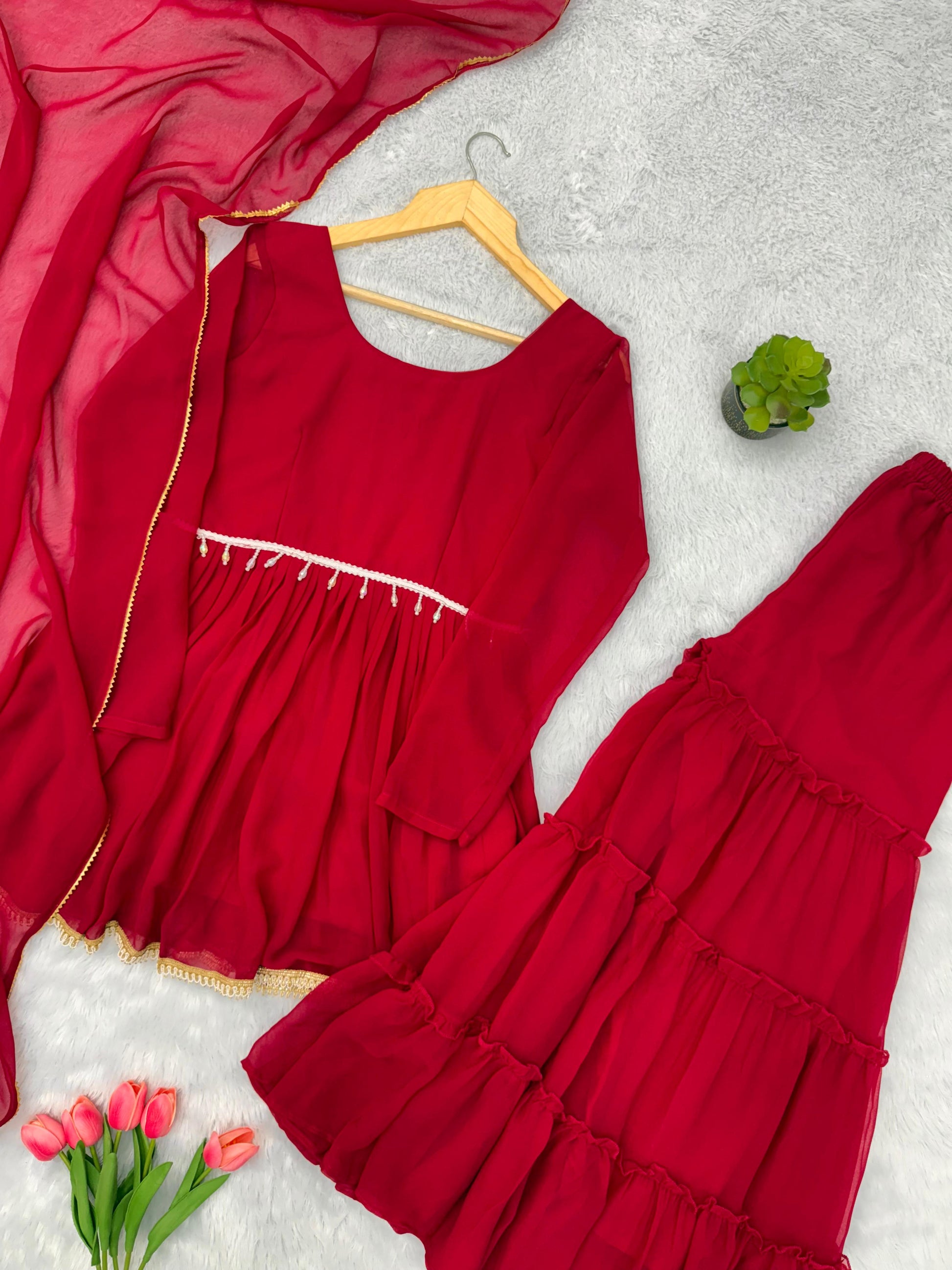 Red Color Pure Soft Fabric Micro Cotton Kediya Kurti With Plazzo