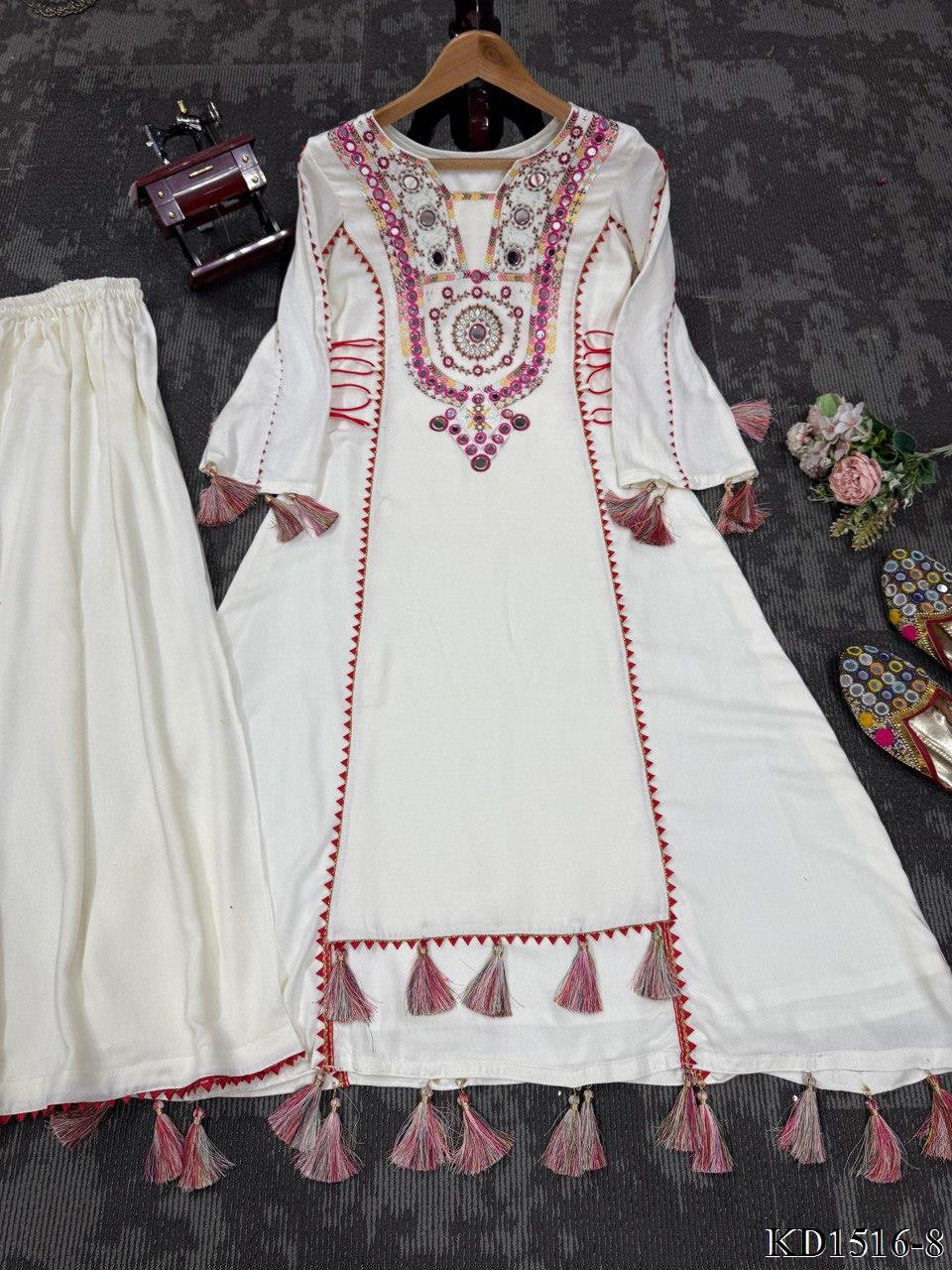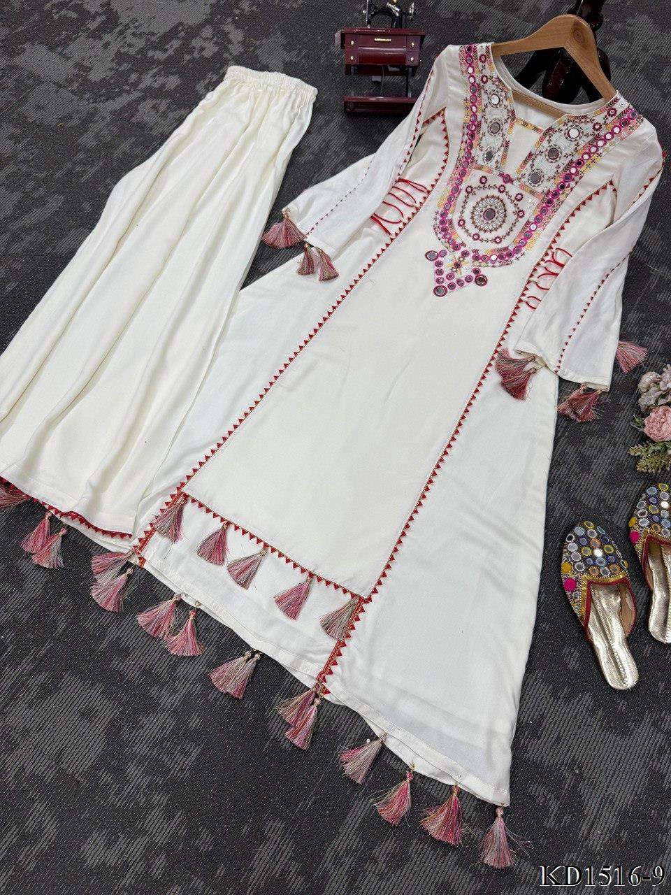 Reyon Fabric With Thread With Real Mirror Work Top Plazzo