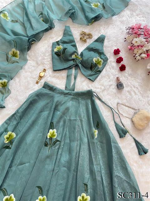 Sky Blue Color Fandy Crush HandPrint Work Lehenga