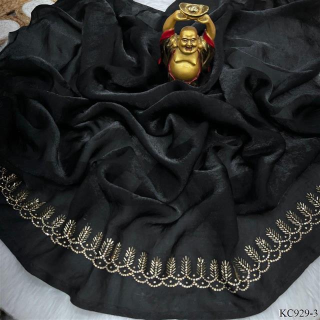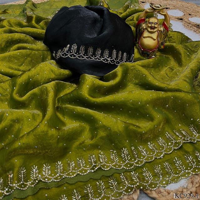 Space Silk Fabric With Jarkhan daimond Work Saree