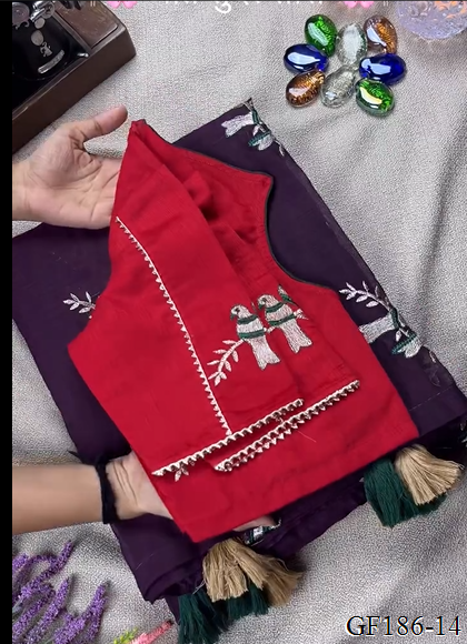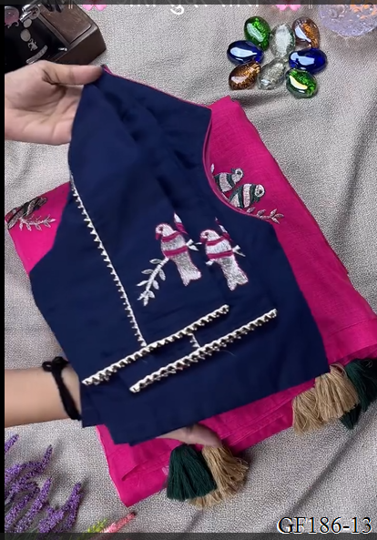 Thred Work With Collar Blouse With Khadi Cotton Saree
