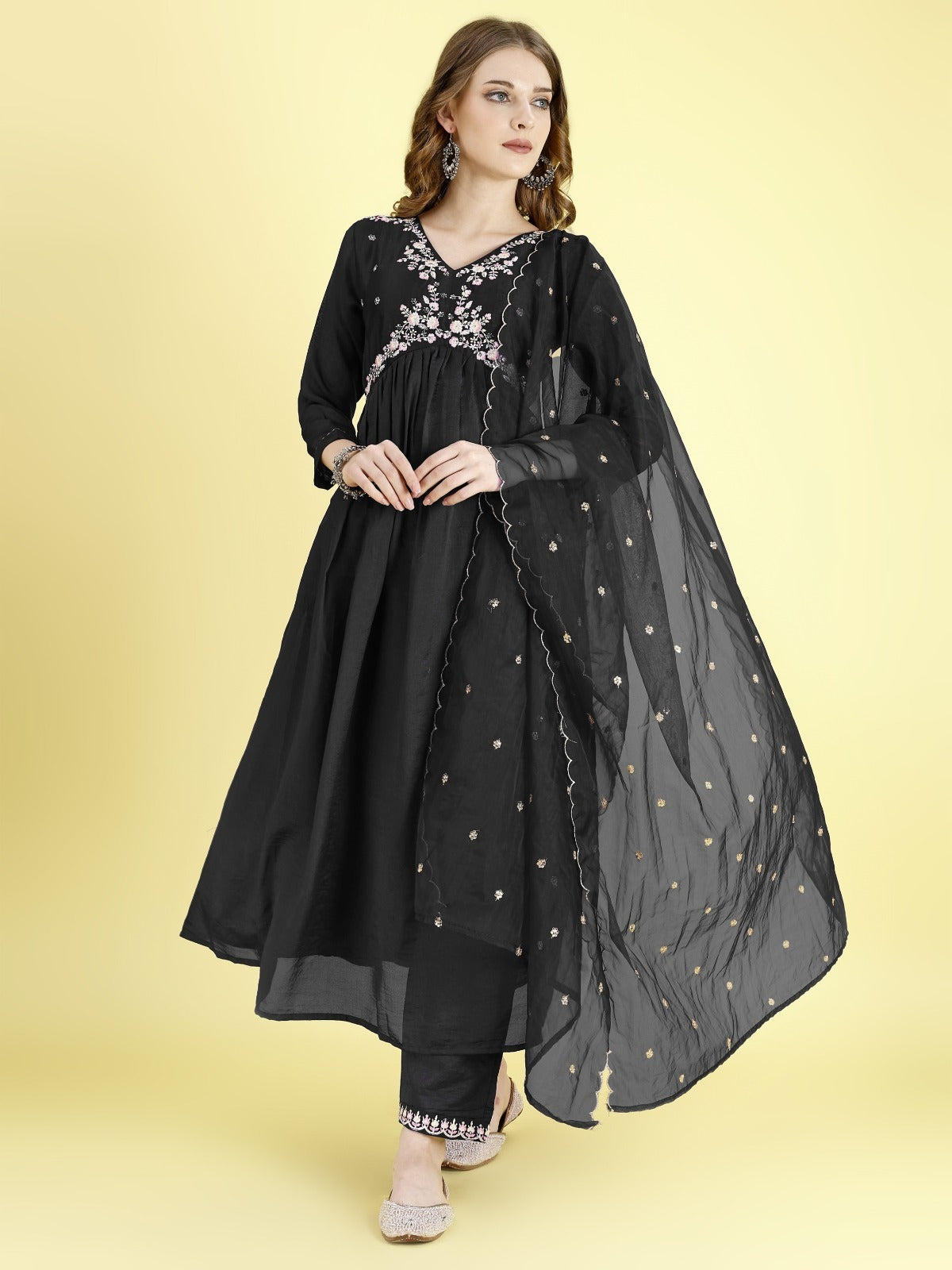Vichitra Embroidery Work And Net Fabric Top Pent