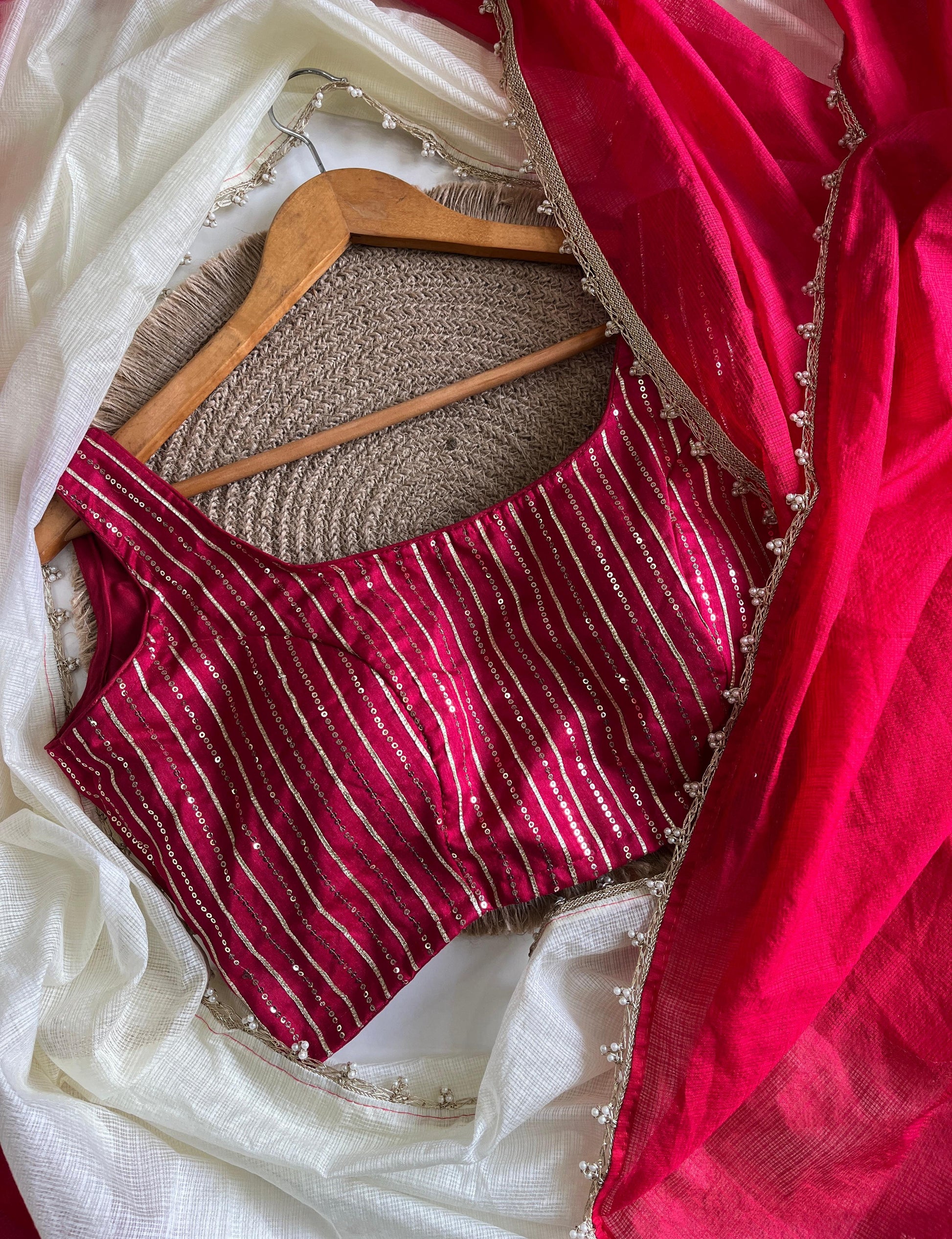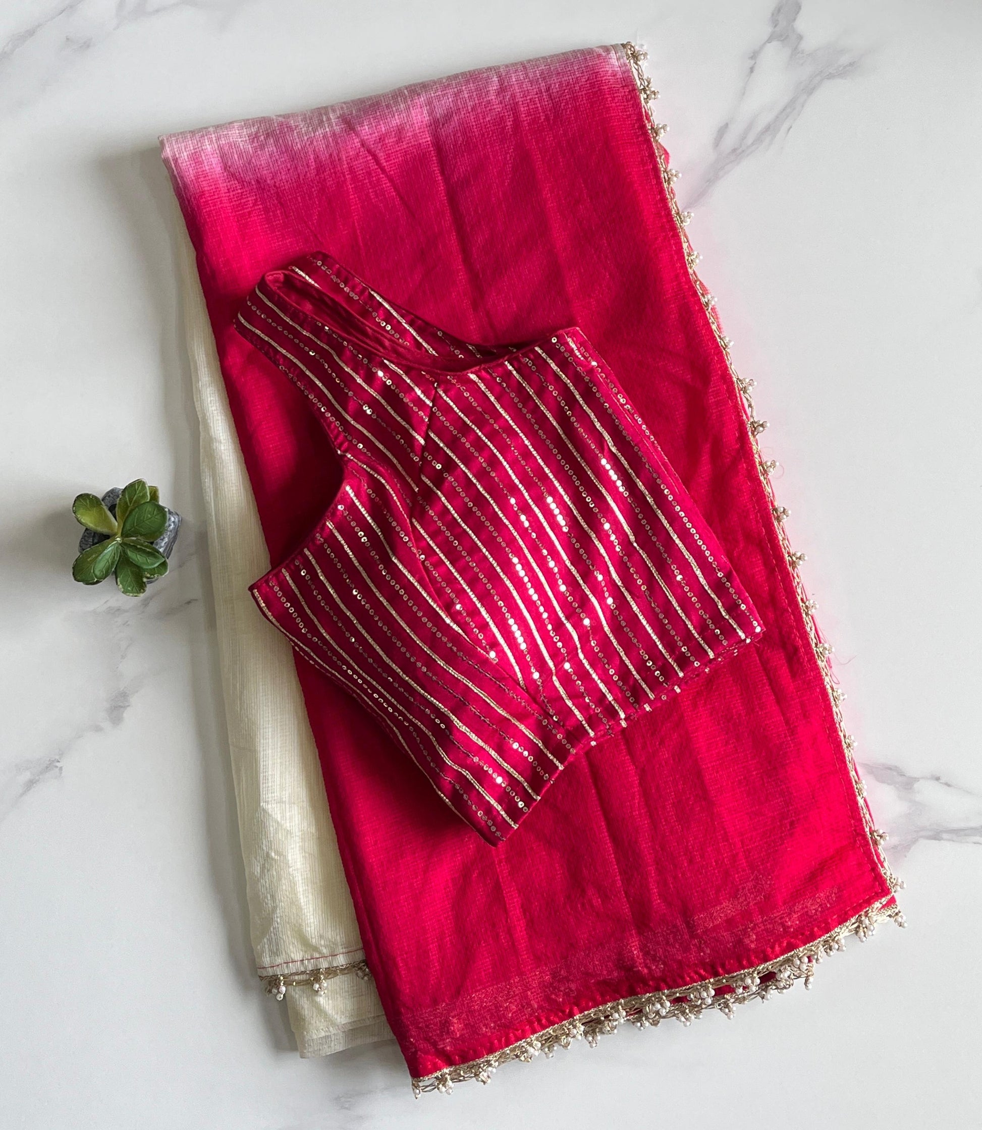 Viscos Kota Doriya Pearl Lace Work Saree
