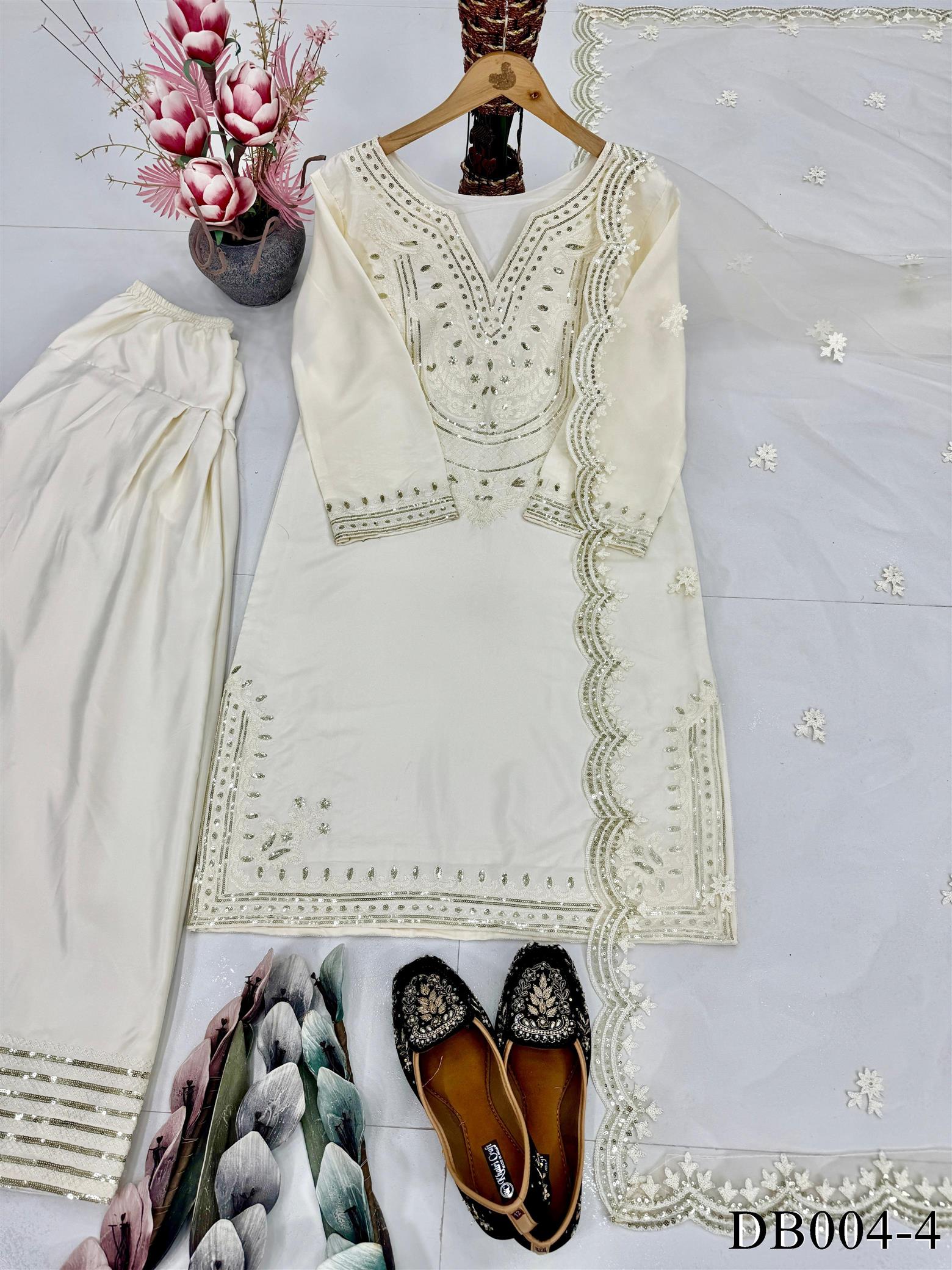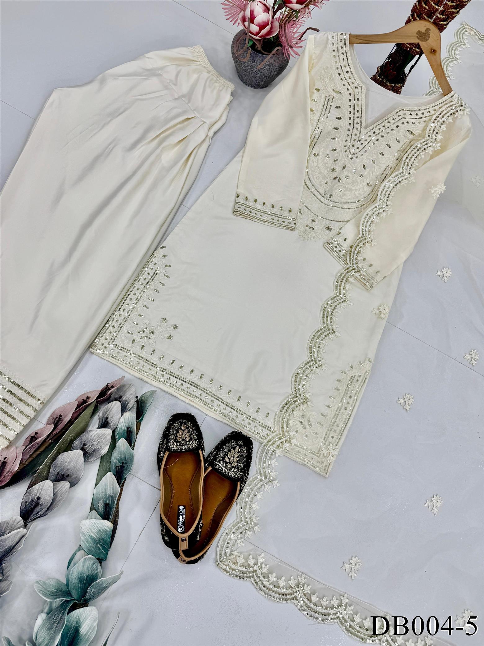 White Color Heavy Natural Silk Embroidery Work Top Plazzo