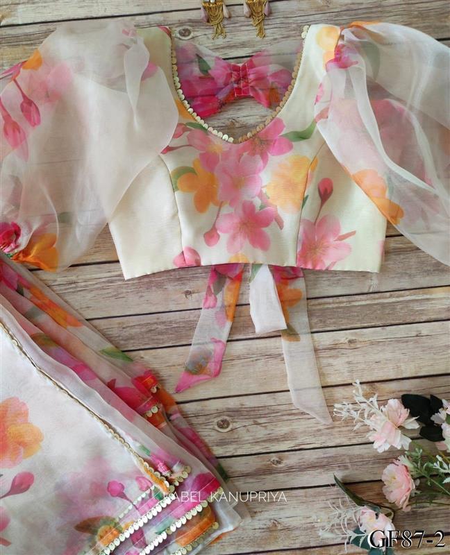 White Color Heavy Organza Silk With Digital Print Work Saree