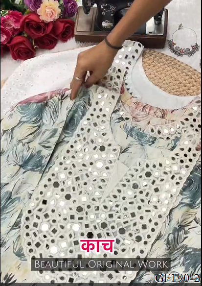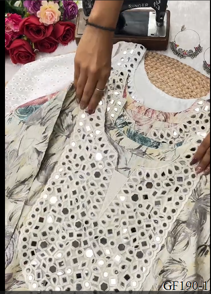 White Color Reyon Foil Fabric Mirror Work Top Pent