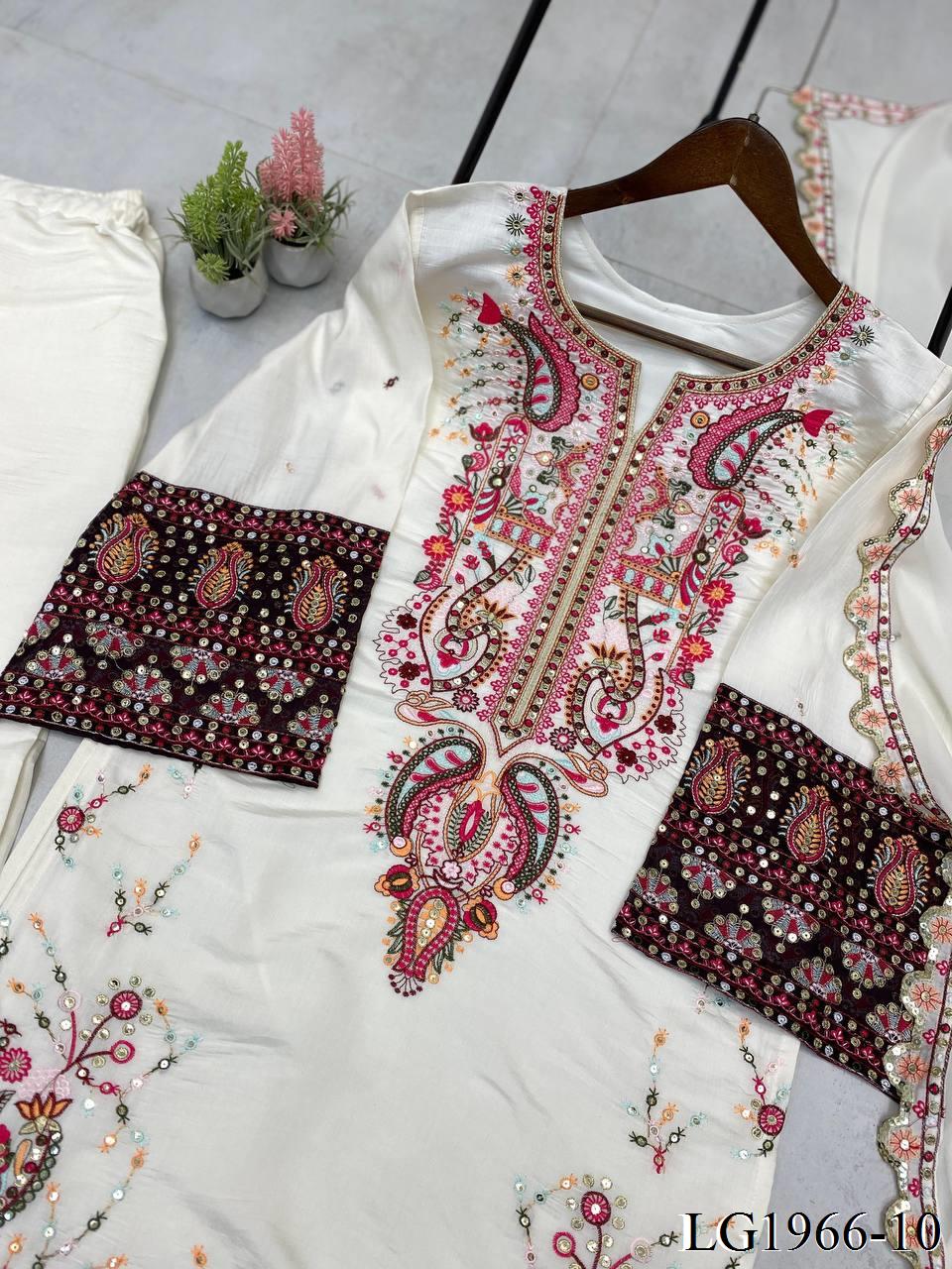 White Color Roman Silk Sequence Embroidery Work Top Plazzo